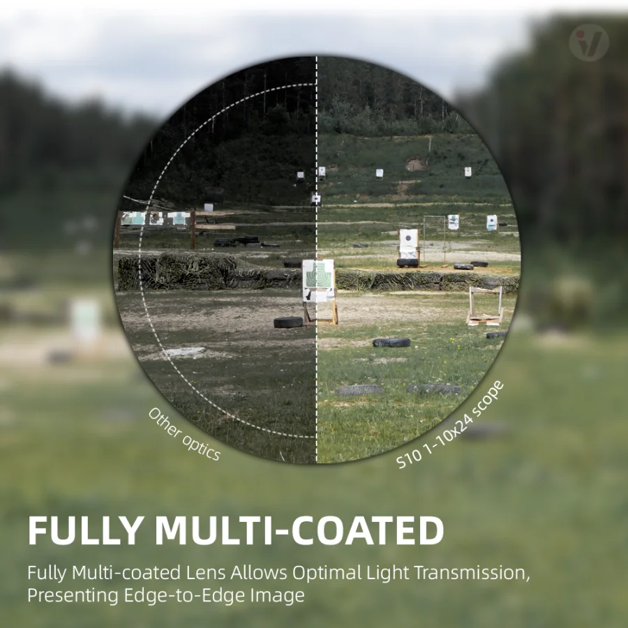 This 1-10×24 LPVO is an affordable, versatile scope with fully multi-coated lenses for excellent light transmission, delivering bright, clear images. Six-level red and green illumination with on/off switches adapts to a range of lighting conditions.