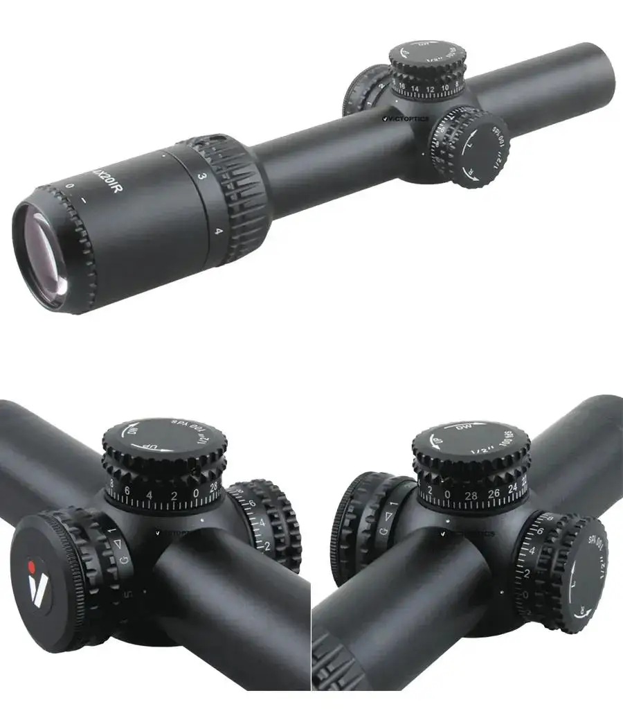 Retícula de alcance tipo Mil, diseñada para fines de alcance universales. También se puede iluminar en condiciones de poca luz, con 5 configuraciones de iluminación roja y verde.