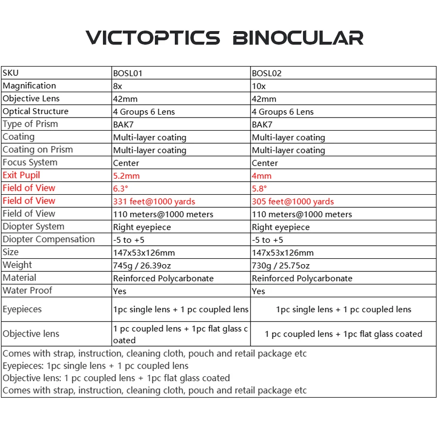 Victoptics 10x42/8x42 Binoculares Económicos con Óptica HD, Prisma de Techo con Revestimiento Múltiple, Ligeros para Caza, Viajes y Avistamiento de Aves