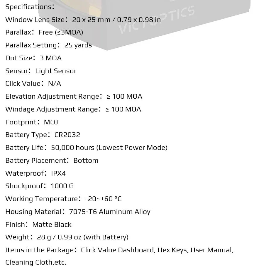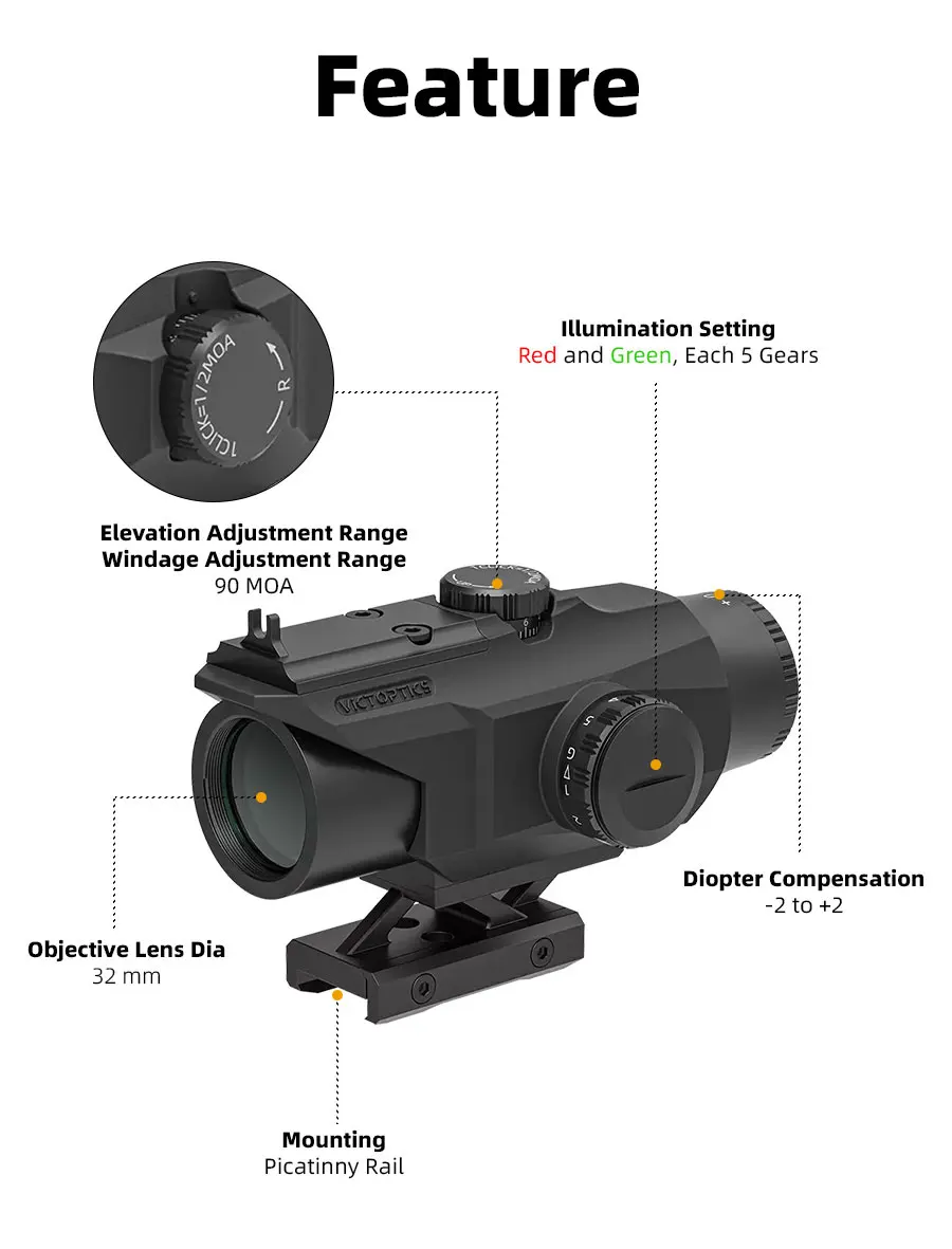 El blindado de goma garantiza durabilidad, valor de clic de 1/2 MOA para un ajuste preciso del viento y la elevación