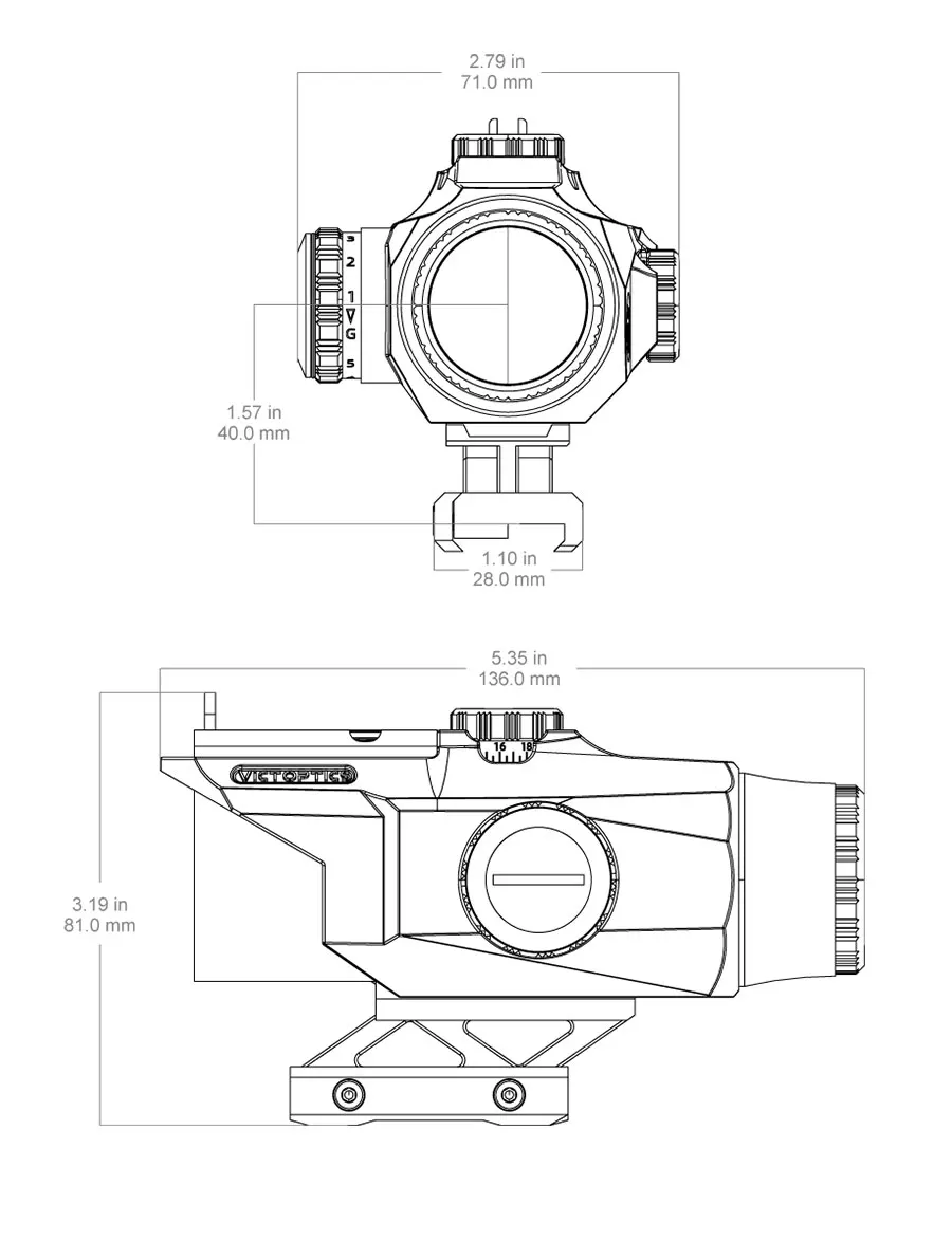 El alcance de prisma liviano de tamaño compacto de 136 mm/5,35 pulgadas de largo se puede aplicar en varias plataformas