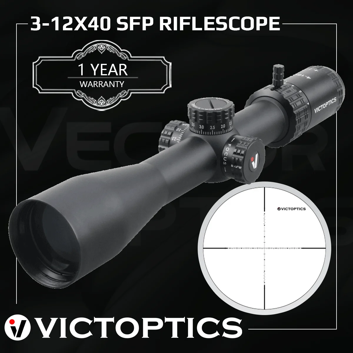 El visor VictOptics S4 3-12×40 SFP es un visor de torreta con bloqueo, que evita movimientos accidentales de las torretas, por lo tanto mejor para uso en exteriores.El valor del clic es 1/10MIL, con un rango de ajuste total de 18MIL.