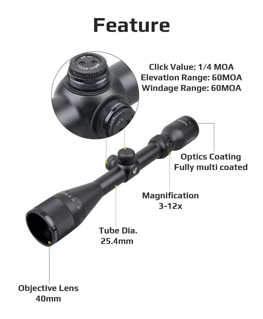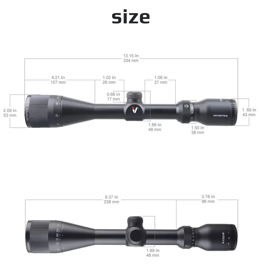 Ajuste de paralaje: min a 10, 15, 20, 30, 50, 75, 100, 200 yardas hasta infinito