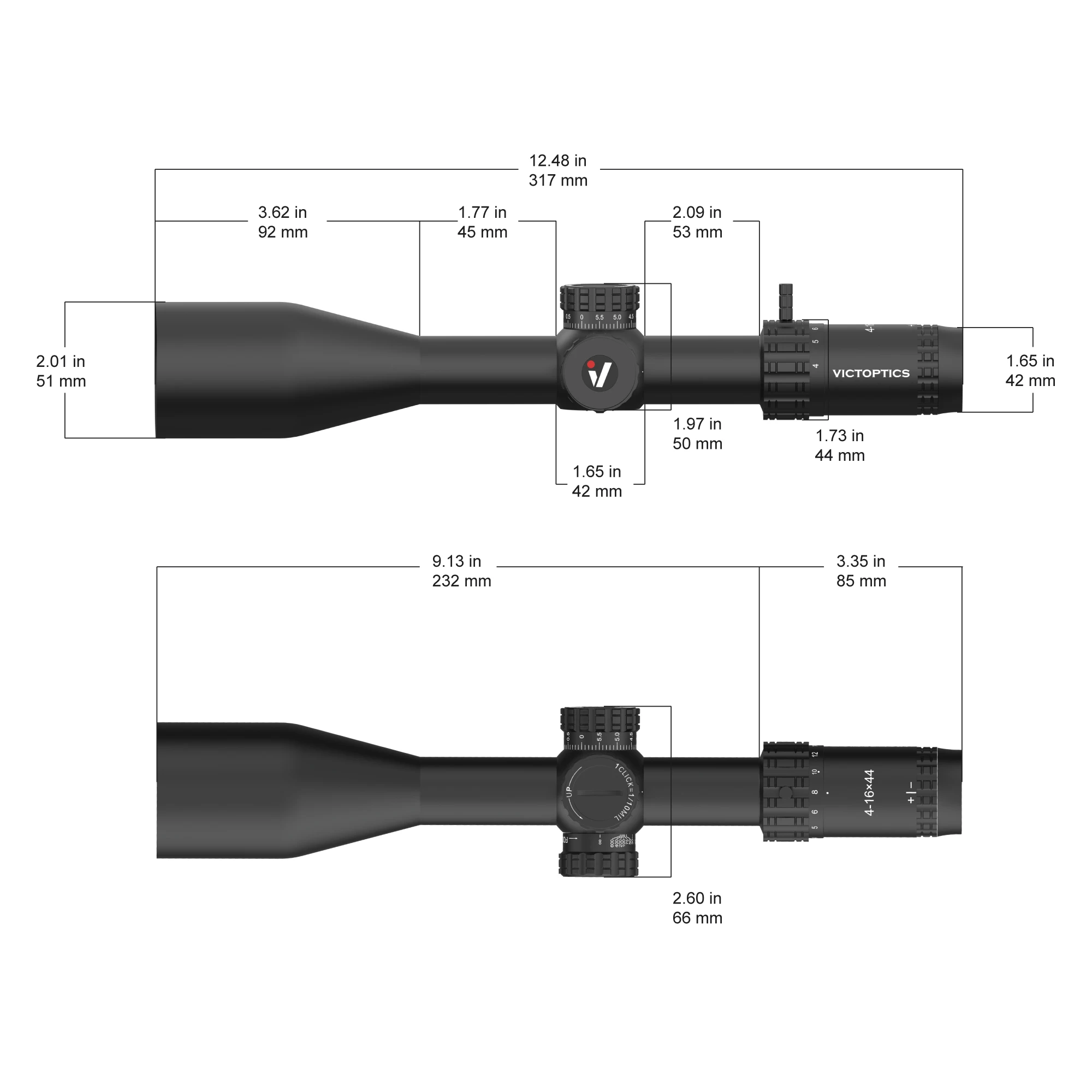 · Ajuste de 1/10mil con función de bloqueo de torreta