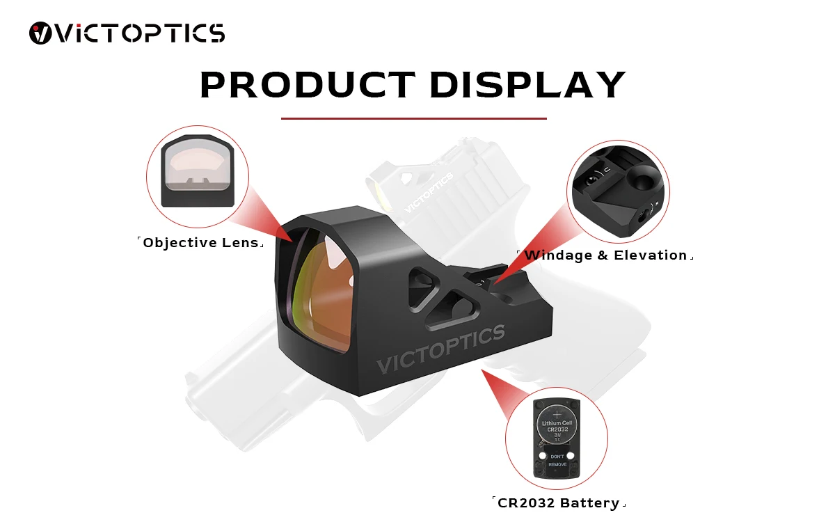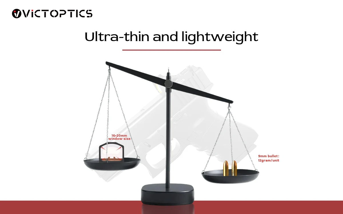 • Mira reflejada ultracompacta con ventana de 16x20 mm, de tamaño perfecto para pistolas sin agregar volumen
