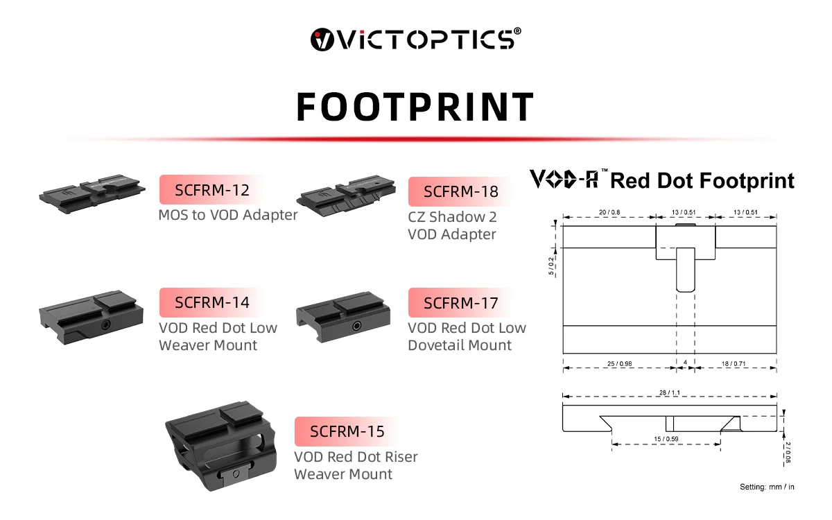 Huella VOD de Vector Optics que se adapta a las miras de puntos rojos de línea SCRD-63 Frenzy Plus