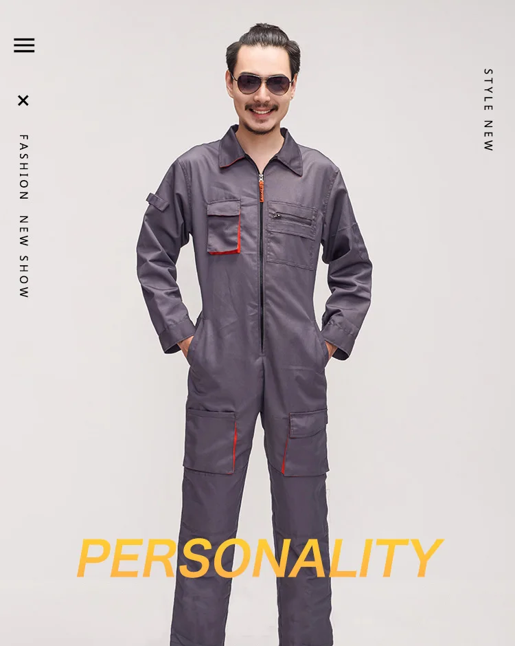 Conjunto de ropa de trabajo de primavera y otoño para hombres y mujeres, antiincrustante, manga larga, duradero, reparador de máquina, mono de taller, uniformes de trabajadoresMono Cargo Vintage Harajuka de manga larga para hombre, peleles con bolsillos con mosca y cremallera, mono para hombre, mono informal holgado a la moda de talla grande