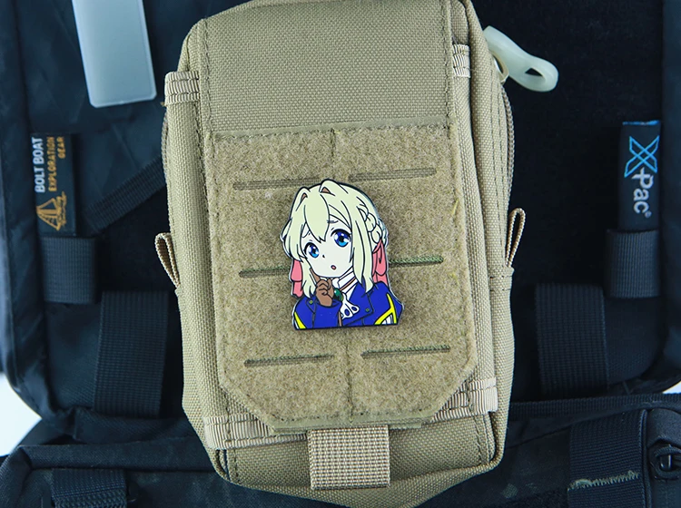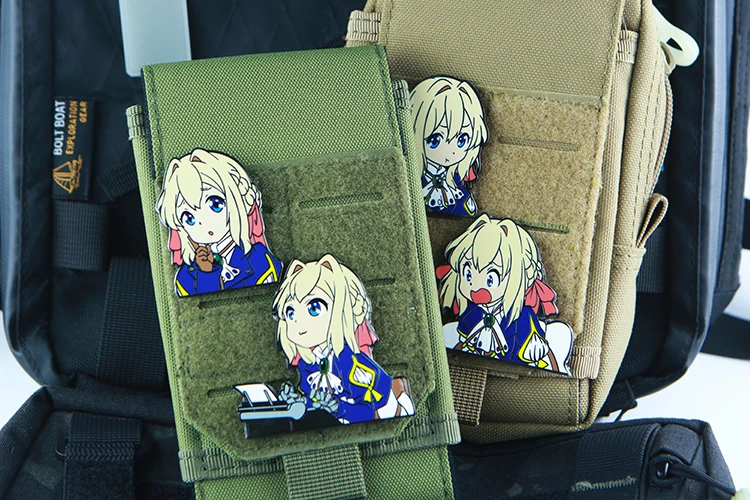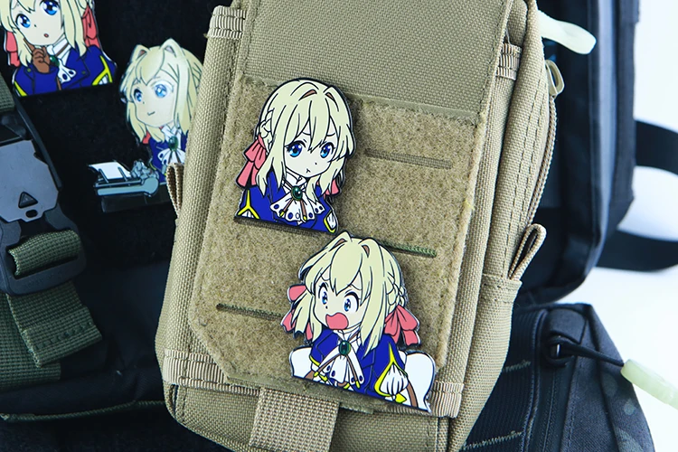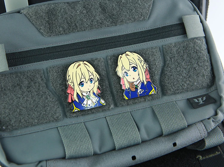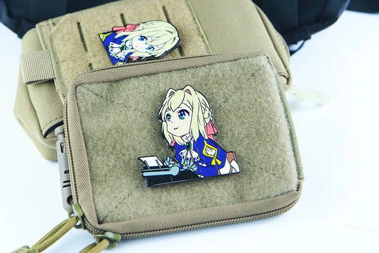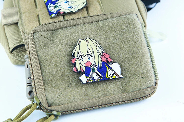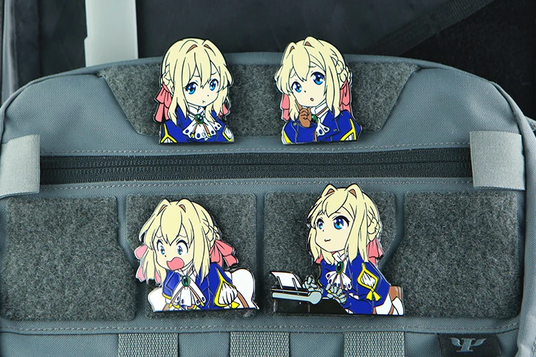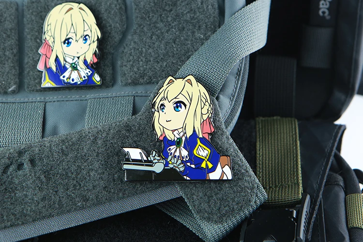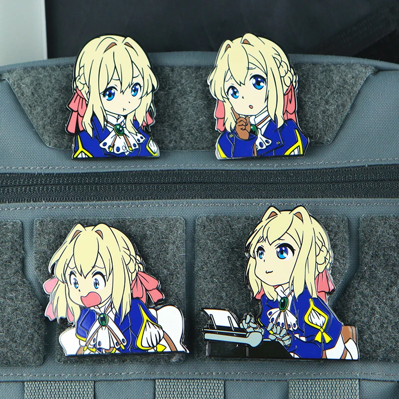Violet Evergarden parches de Metal de expresión de dibujos animados, insignia de Anime para ropa, mochila, pegatinas DIY con gancho