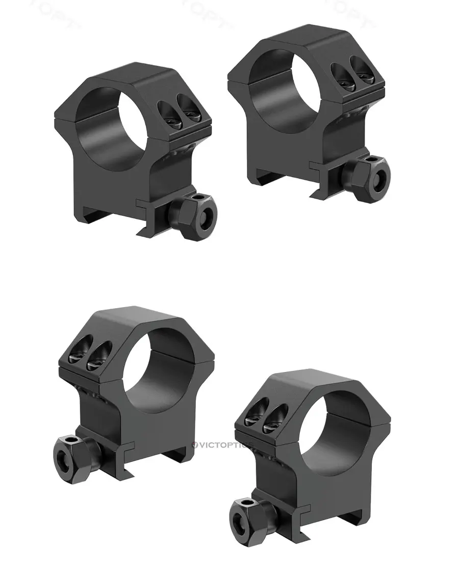 Mecanizado CNC, lo que permite que el software y el código preprogramados controlen el movimiento del equipo de producción. 4 tornillos por anillo garantizan un montaje seguro y estable para su mira. Y las dimensiones de la ranura Weaver permiten su uso en rieles y bases Weaver y Picatinny. Hecho de aleación de aluminio de alta calidad, lo que los hace ligeros y duraderos, diseñados para su uso en armas de fuego reales.