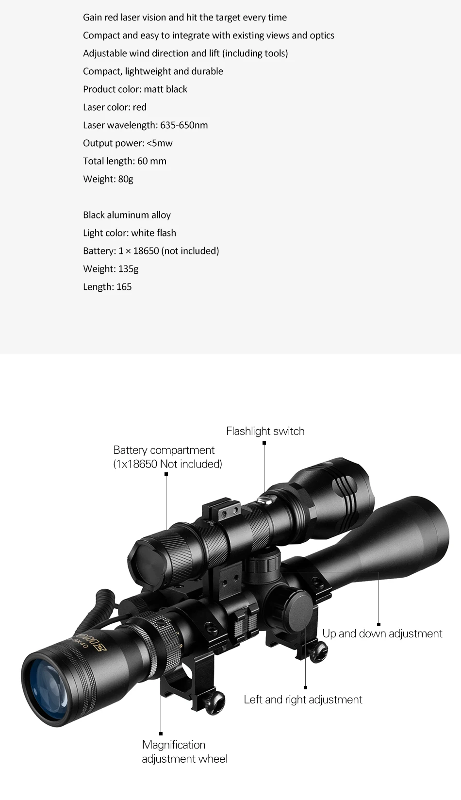 Un producto muy bueno, el visor coincide exactamente con lo que se describe en la descripción. Definitivamente vale el precio, independientemente de los extras incluidos (laser, lámpara). Una recomendación absoluta, por lo tanto.