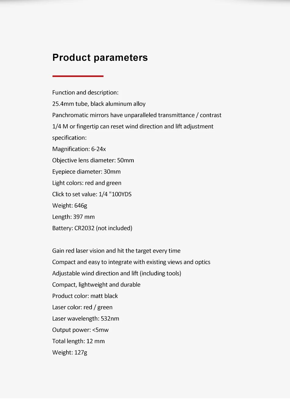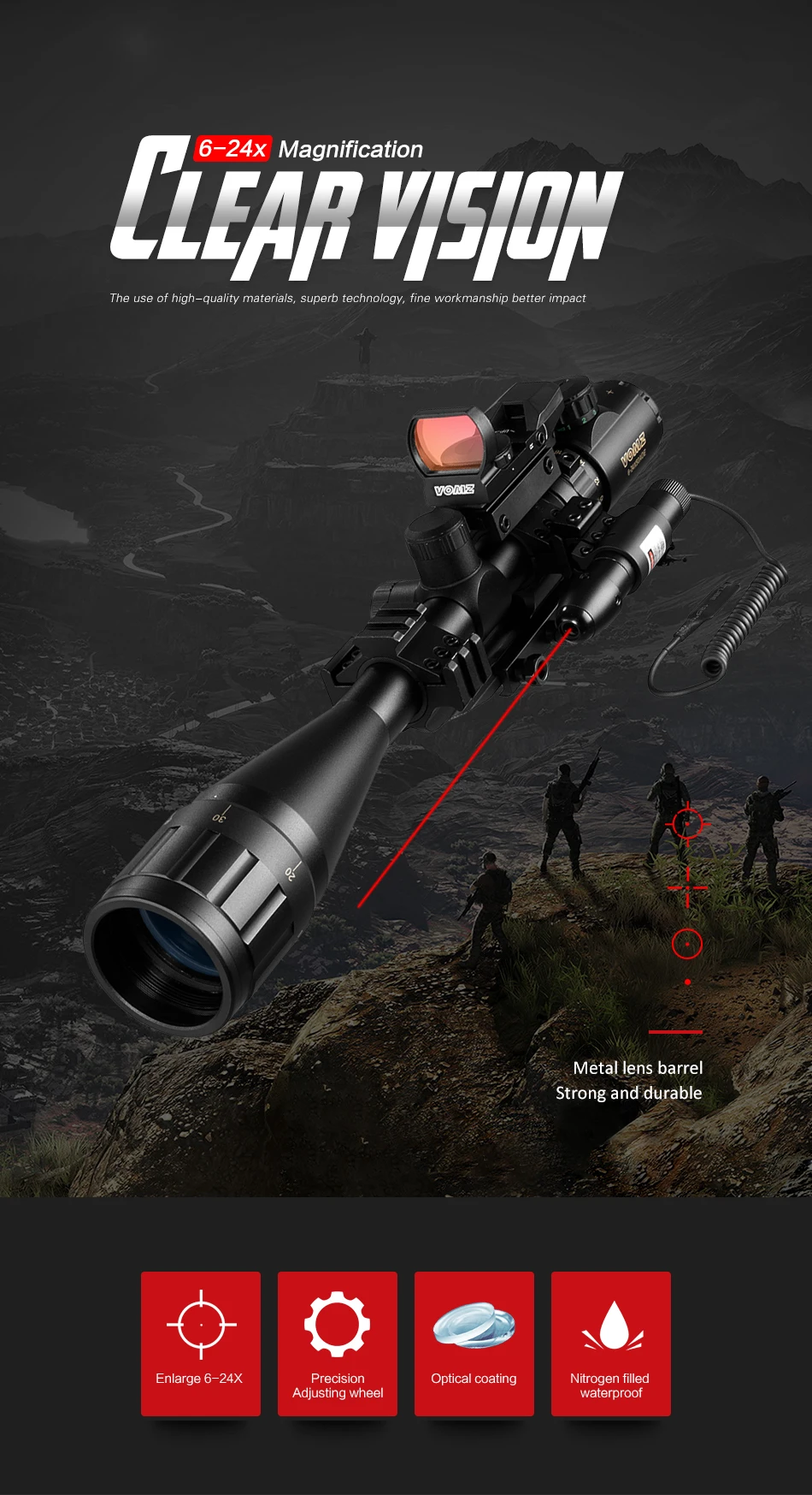 VOMZ 6-24x50 AOEG alcance telémetro Rifle alcance con holográfica 4 retícula vista punto rojo verde láser Combo Riflescope Ar15