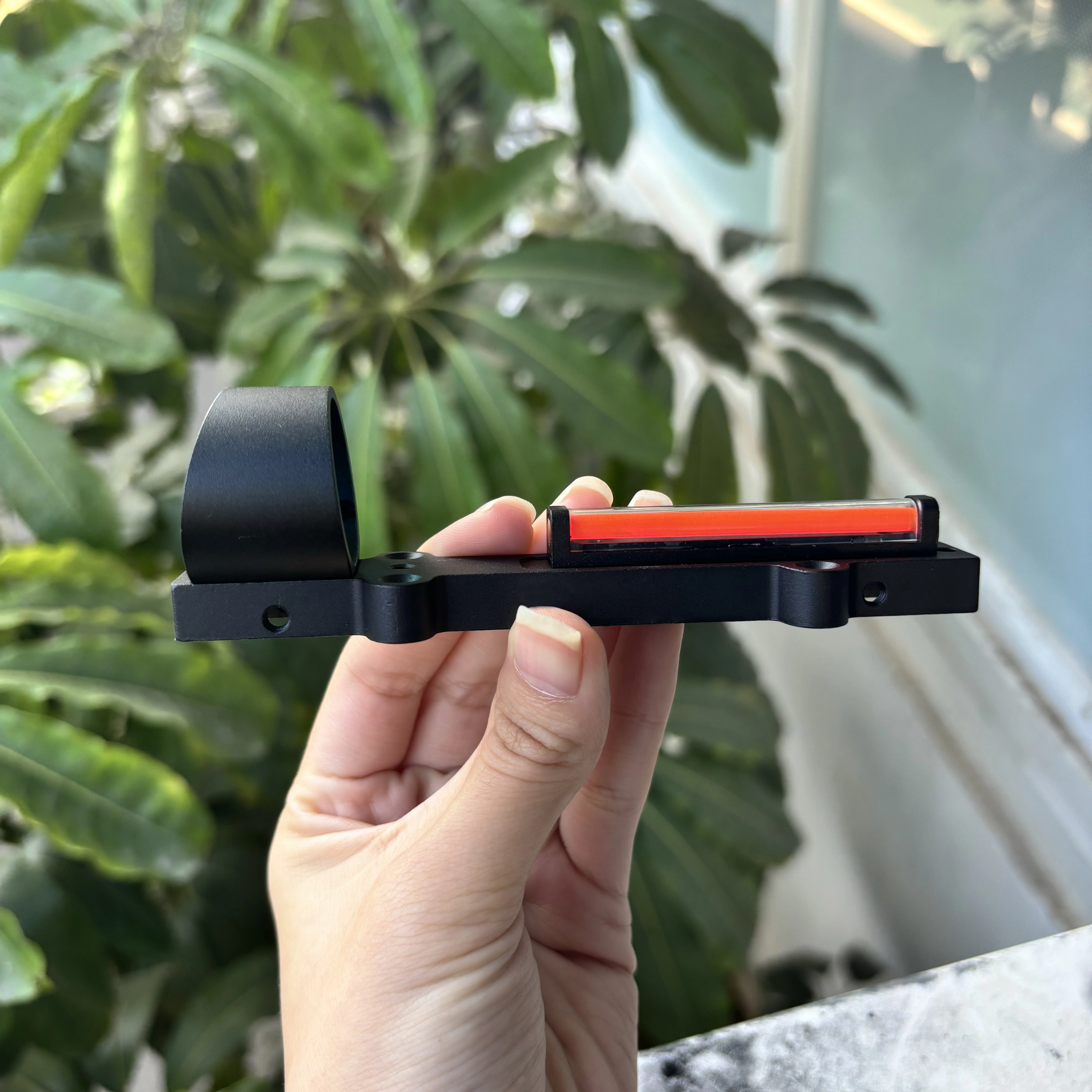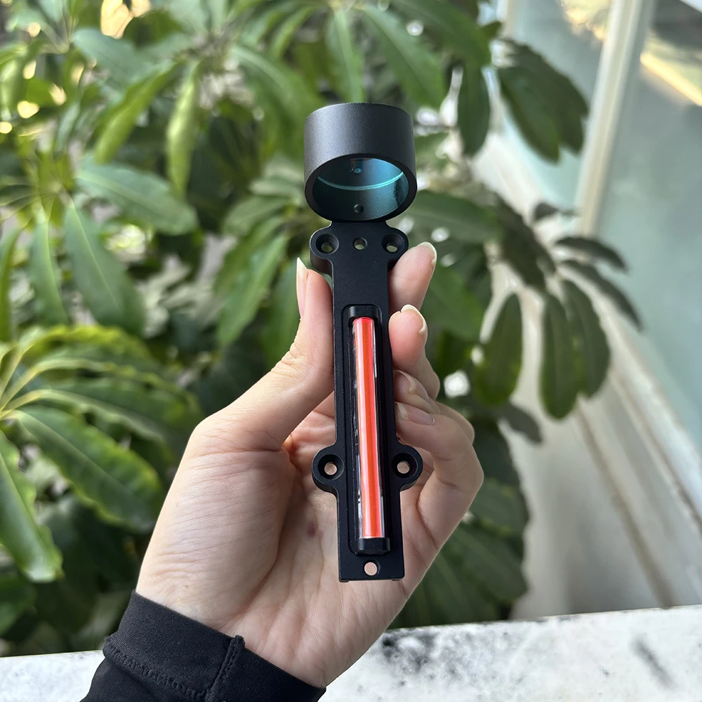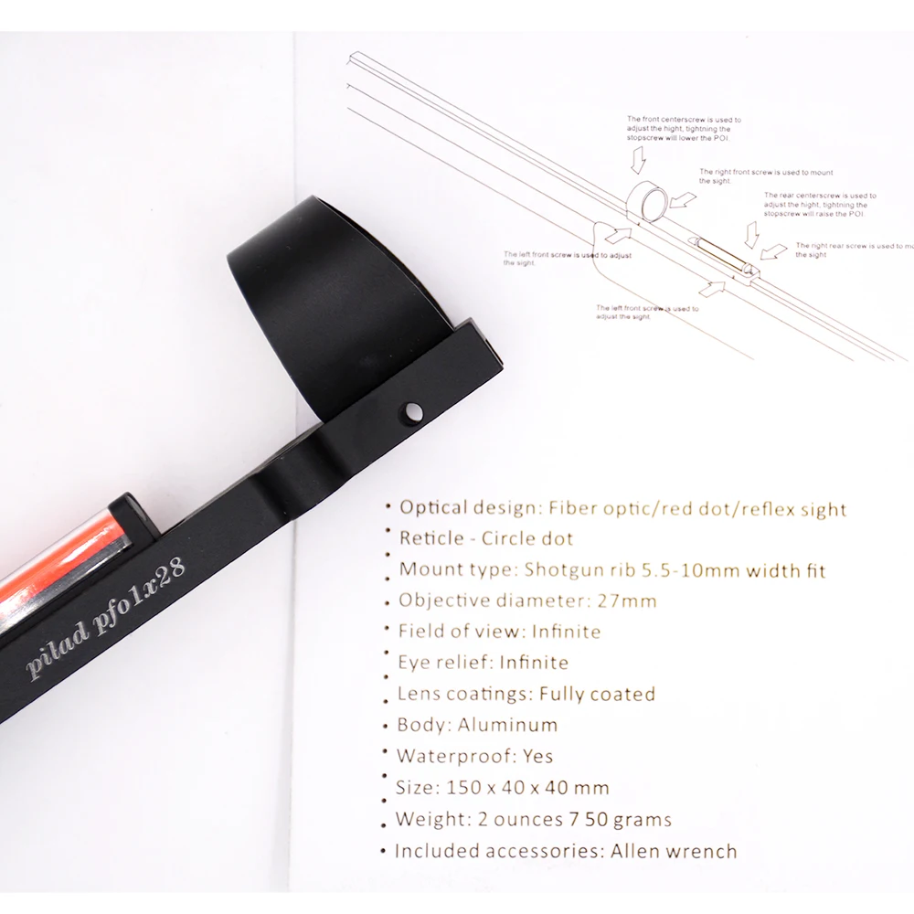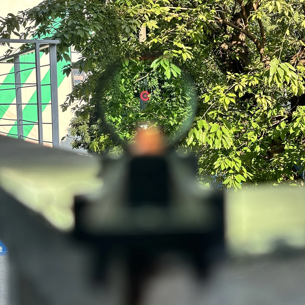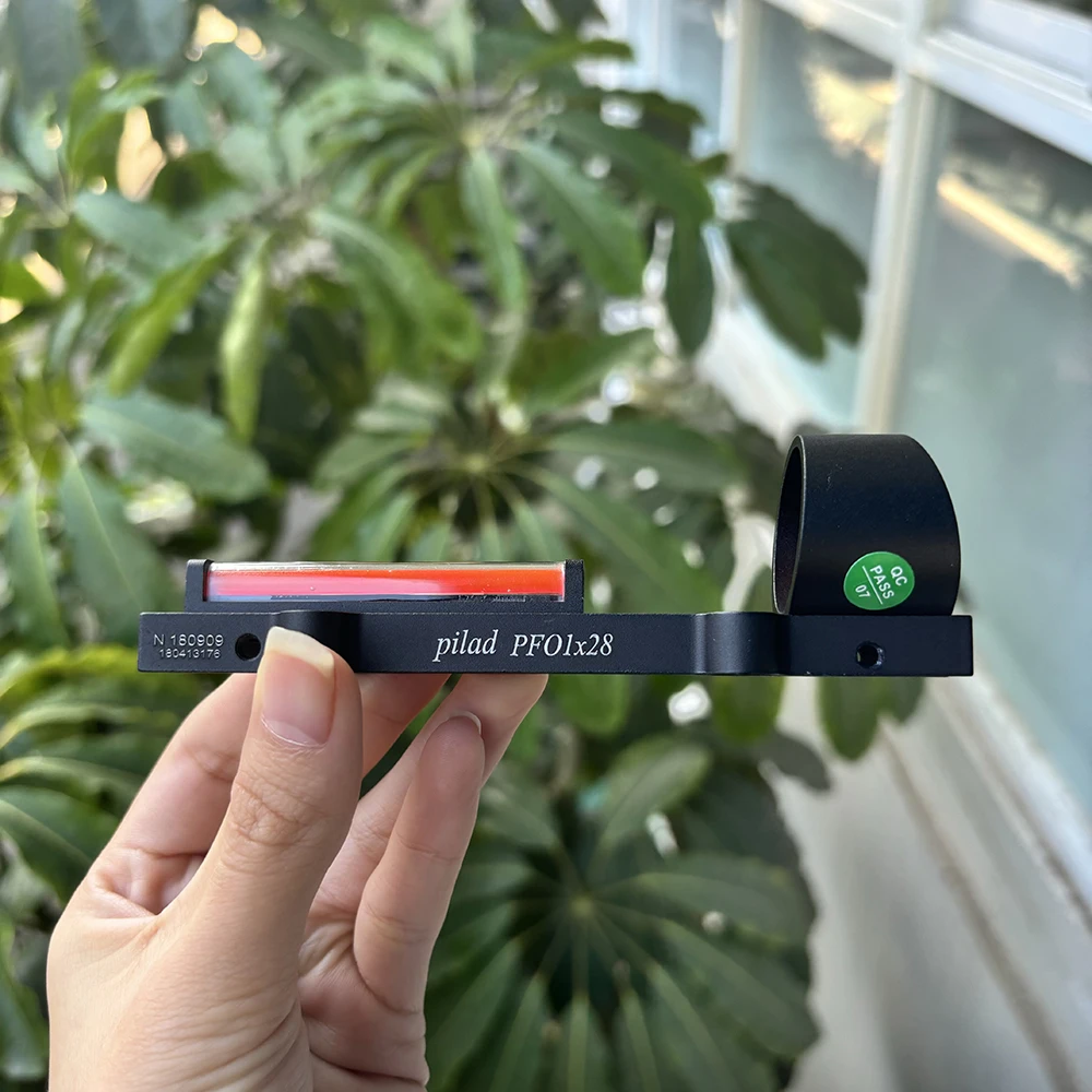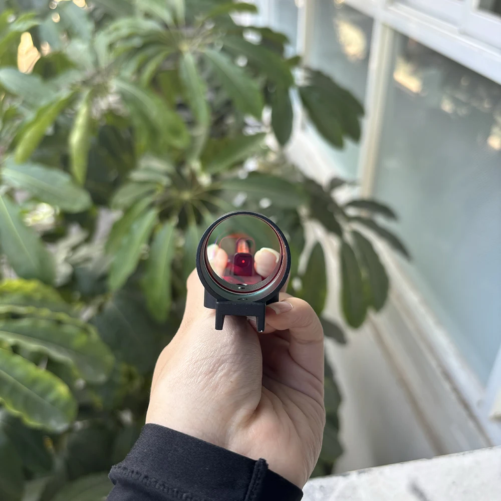 El producto es de muy baja calidad. El punto en el cristal es un semicírculo con un punto en el medio. La fibra óptica también es de baja calidad y está inclinada, lo que hace que el punto se vea extremadamente distorsionado. Muy decepcionado con este producto y nunca volvería a comprarlo. Compra solo si lo quieres por su apariencia y no por ningún beneficio funcional.