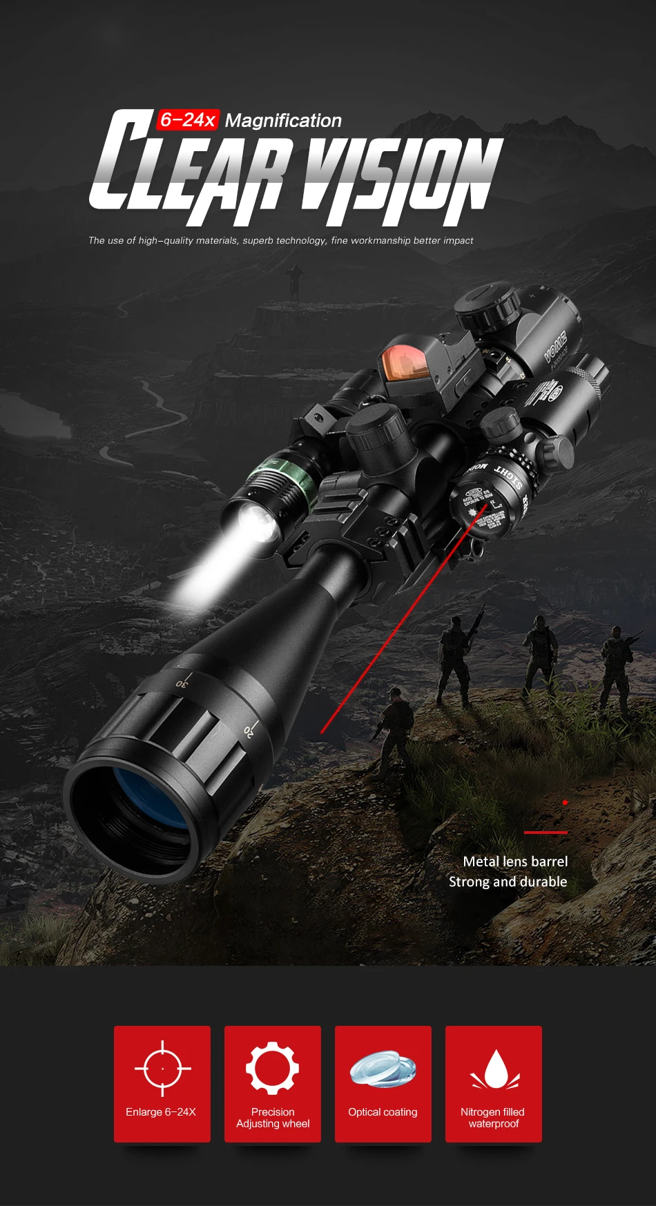 VOMZ-mira telescópica holográfica 6-24x50 AOEG, telémetro con 4 retículas, punto rojo, punto verde, láser combinado