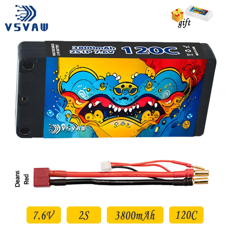 VSVAW 2S 7,6 V 3800 mAh 120 C con enchufe T/XT60/XT90/XT90S/TRX/EC5/EC3 adecuado para el control remoto de automóviles, camiones, vehículos, drones, aviones, cuadricópteros, helicópteros, FPV, modelos de pasatiempos de control remoto
