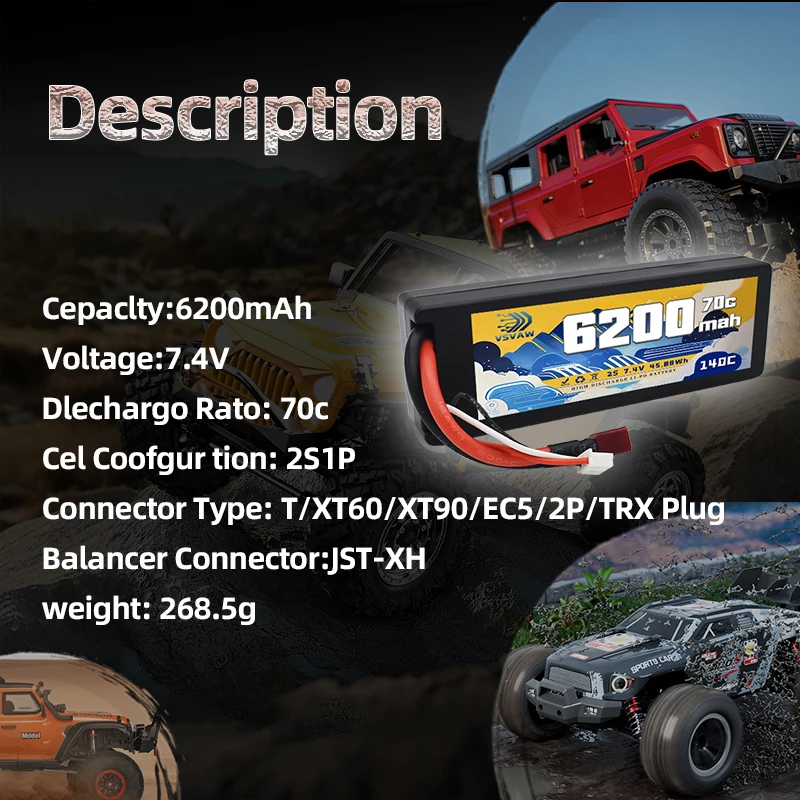 Tipo de conector: enchufe T/XT60/XT90/EC5/EC3/2P/TRX