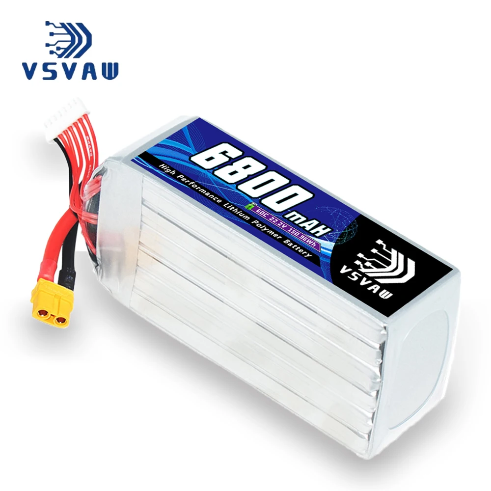 Batería Lipo VSVAW 6S, batería para Dron FPV de 22,2 V, 6800 mAh, 60C con estuche blando XT60 para coche RC, avión, barcos, piezas de modelo de batería RC