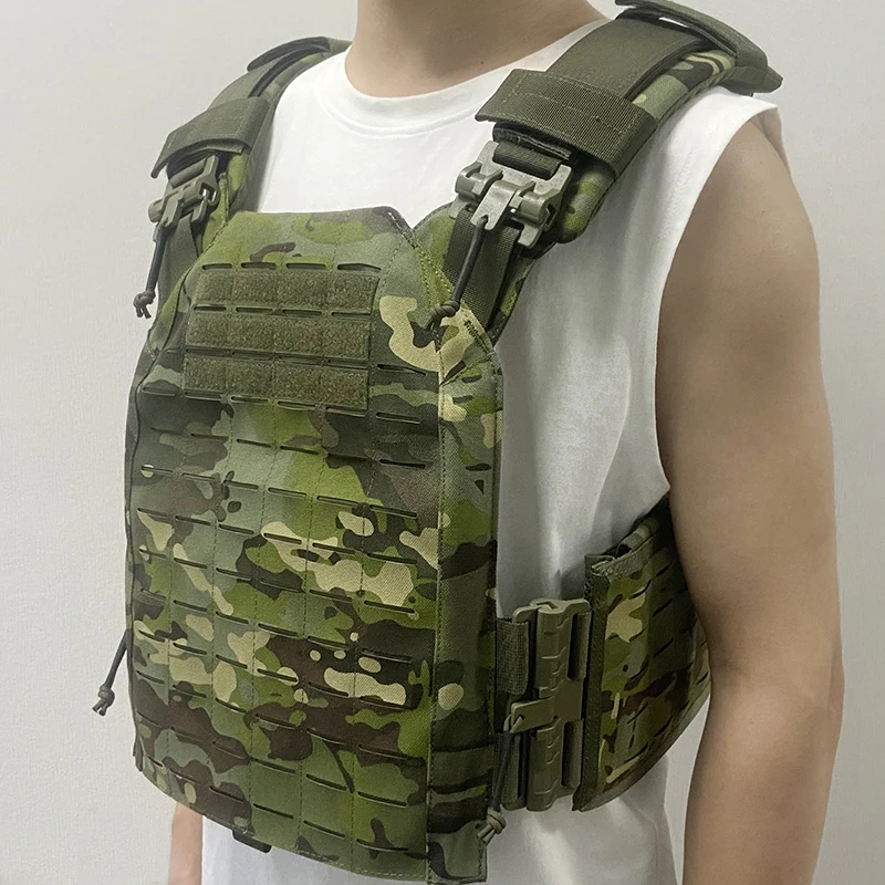 El tamaño plano del cuerpo es de 34*28*4cm, la parte delantera y trasera pueden insertar placas de 10 "* 12"