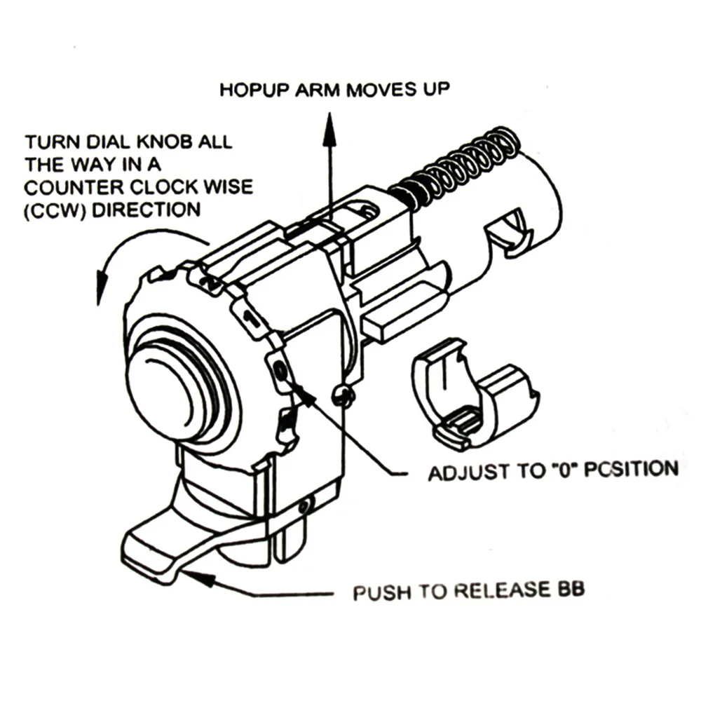Diseñado con sistema de cierre con pasador de retroceso de disparo para bloquear automáticamente, retrocesos de disparo en la cámara Hop up para evitar que se caiga, retrocesos de disparo después de retirar el cargador