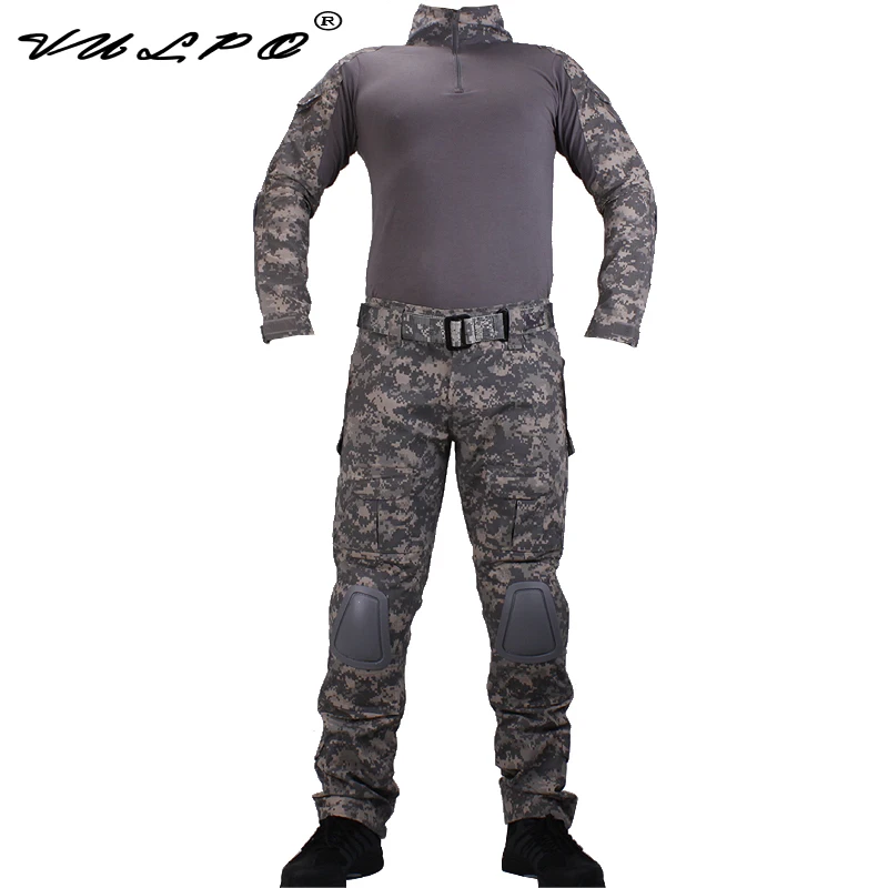 VULPO camuflaje BDU ACU uniformes de combate camisa/broche y codo/rodilleras juego militar Cosplay uniforme Ghilliek traje