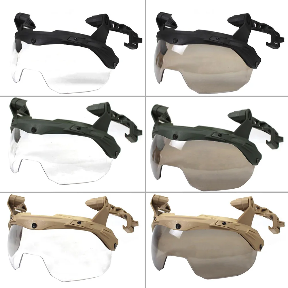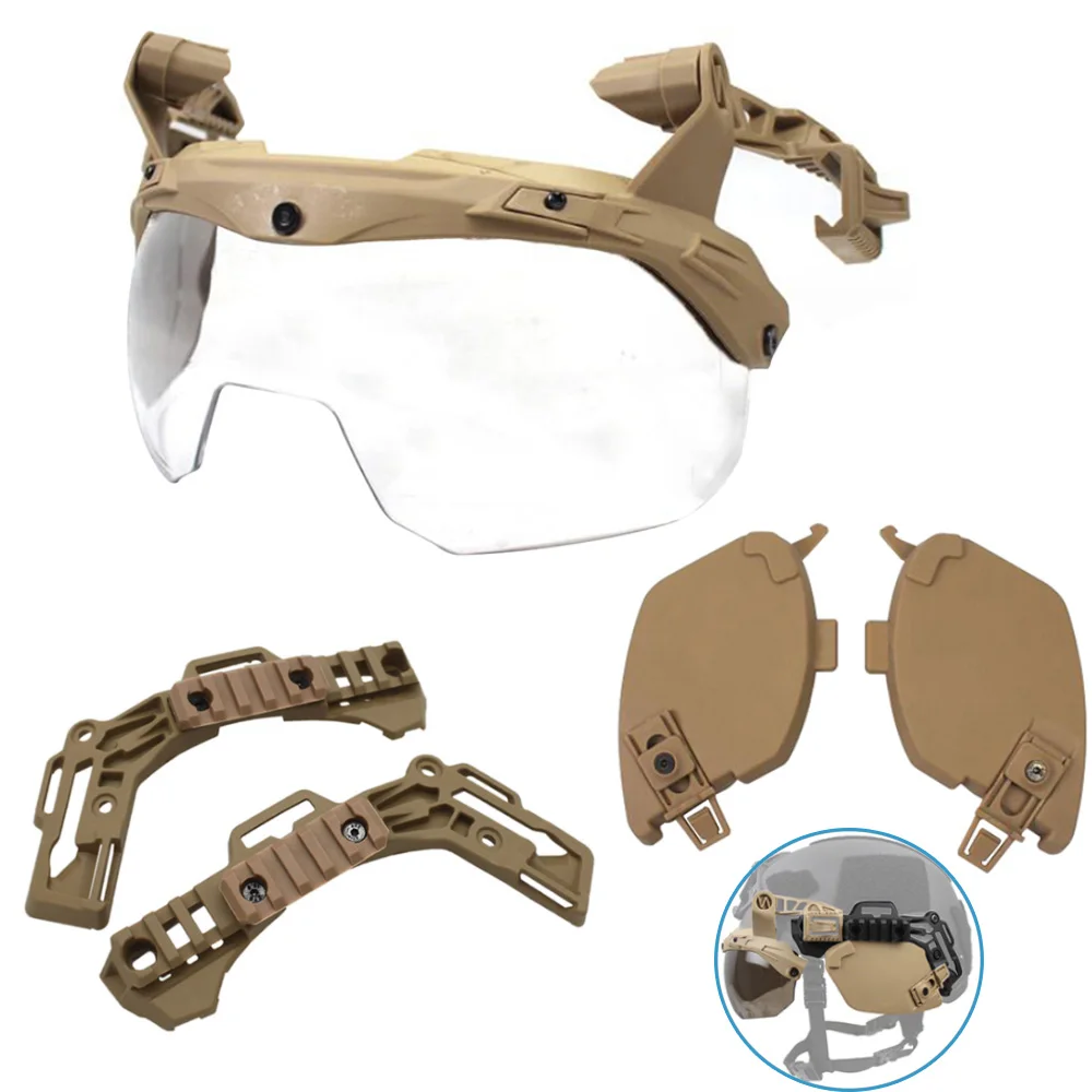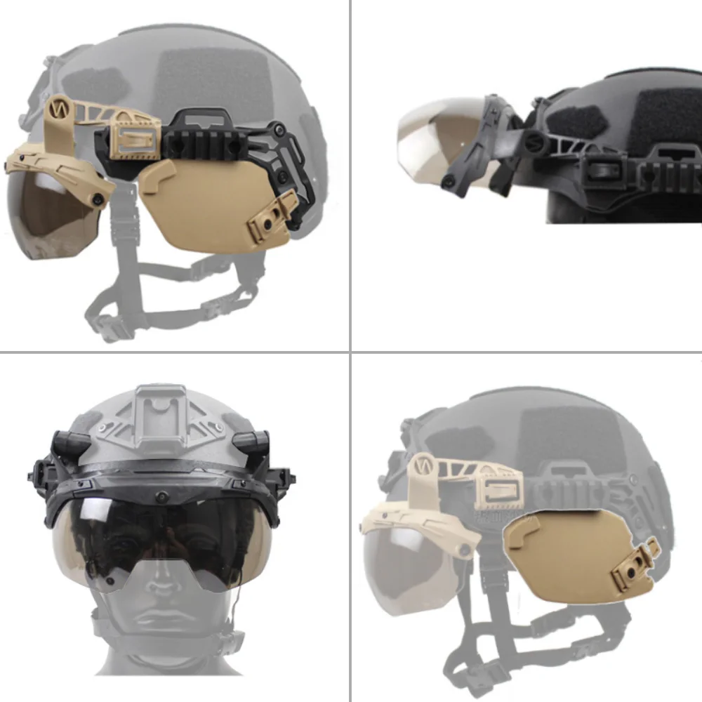 Adecuado para riel Wendy's 3,0, se puede ajustar rápidamente en múltiples ángulos, no bloqueará la instalación y el uso de NVG, lente engrosada de PC, puede evitar eficazmente que los restos del borde del casco penetren en las gafas del usuario y, al mismo tiempo, es adecuado para aquellos que usan gafas para miopía.