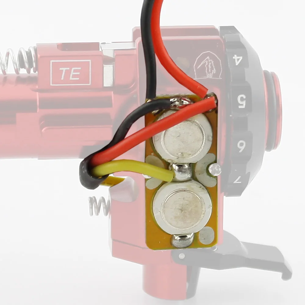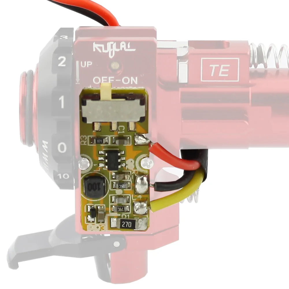 Incluye LED y módulos electrónicos para iluminar BBs en la oscuridad.Voltaje de funcionamiento de 7 VCC - 20 VCC (2-5 celdas LiPo, 6-16 celdas NiCad)