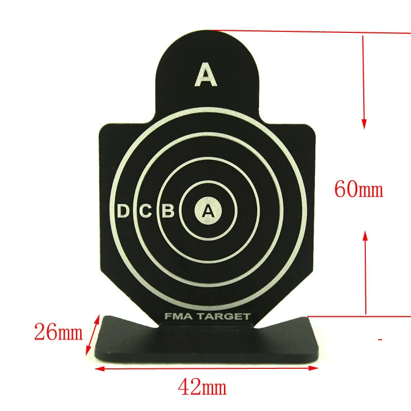 Descripción del artículo: Construcción de Metal Dimensiones: 6cm x 4,2 cm Es bueno para la práctica Útil para la reducción a cero armas Perfecto para un disparo rápido de piotol Especificaciones: Material: Metal ESTILO DE DISEÑO: redondo, cuadrado Paquete: 6 unids/pack