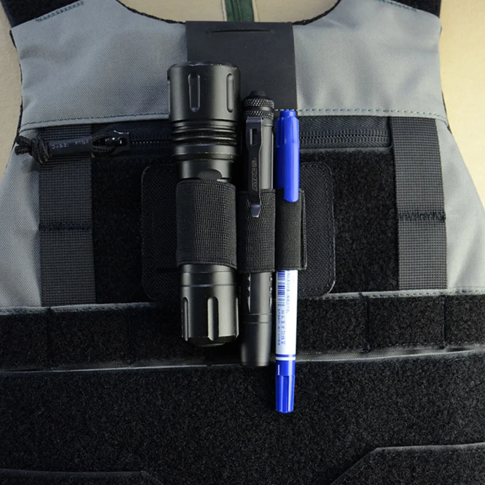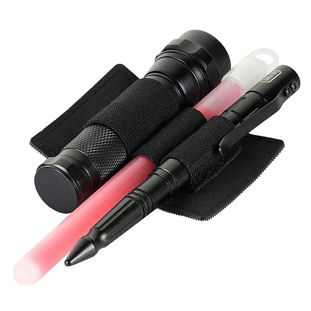 -- Práctico: las bandas elásticas están diseñadas para sujetar una linterna, cuchillo, multiherramienta, cilindro de gas, bolígrafos tácticos, luz química y mucho más.