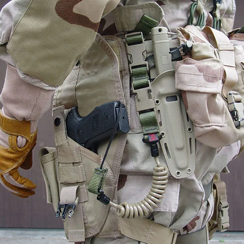 Se puede utilizar como eslinga de resorte telescópica de pistola o cuerda de seguridad táctica