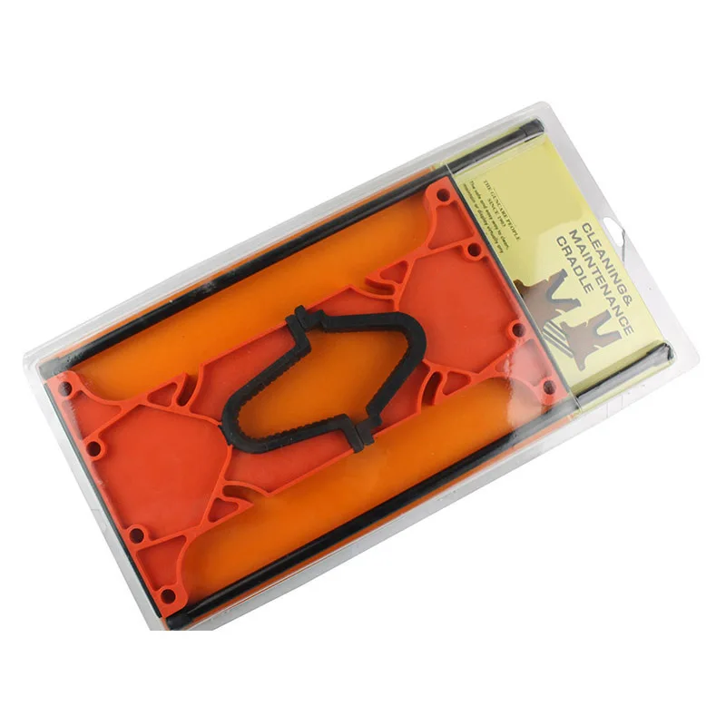 La forma segura y fácil de limpiar, mantener o mostrar prácticamente cualquier arma largaLa cuna de limpieza y mantenimiento tiene todas las "cosas correctas", con monturas sobremoldeadas de goma, sujetará de forma segura cualquier arma larga: grande y pesada, pequeña y ligera, corta o largaAmbos lados de la cuna tienen muescas para sostener varillas de limpieza de cualquier tamaño, la cuna se ensambla rápidamente sin herramientas y se ajusta a cualquier longitud, Y se desmonta con la misma facilidad para un transporte compacto en su caja de rango o kit de limpiezaLa cuna Tiene dos alturas de sillín diferentes que permiten sostener el nivel de la pistola o sujetarla hacia abajo. Usar en la posición de nivel para la instalación y mantenimiento del alcance, y usar la posición de boca hacia abajo para la limpieza del barril.Se pueden interconectar dos o más soportes haciendo una tarjeta múltiple que ocupa menos espacio en eventos de tiro y proporciona mayor seguridad para múltiples pistolasLa base de limpieza y mantenimiento es perfecta para:-Limpieza pistola-Instalación de alcance-Ropa de cama de cristal-Mantenimiento y reparación-Exhibición de rifles-Color: naranja y negroNota: Hay dos precios, uno es el envío sin la caja de embalaje original, otro es el envío con la caja de embalaje original, pero el producto es el mismo, haga la elección correcta, gracias