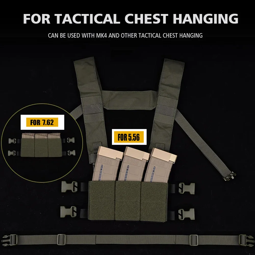 VULPO Tactical 5,56/7,62 Triple Magazine Pouch Hook Loop Panel Kydex Insert Mag Pouch para chaleco de caza Chest Rig