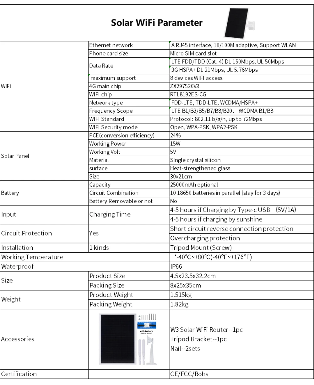 W3 15W paneles solares 4G inalámbrico LTE router wifi
