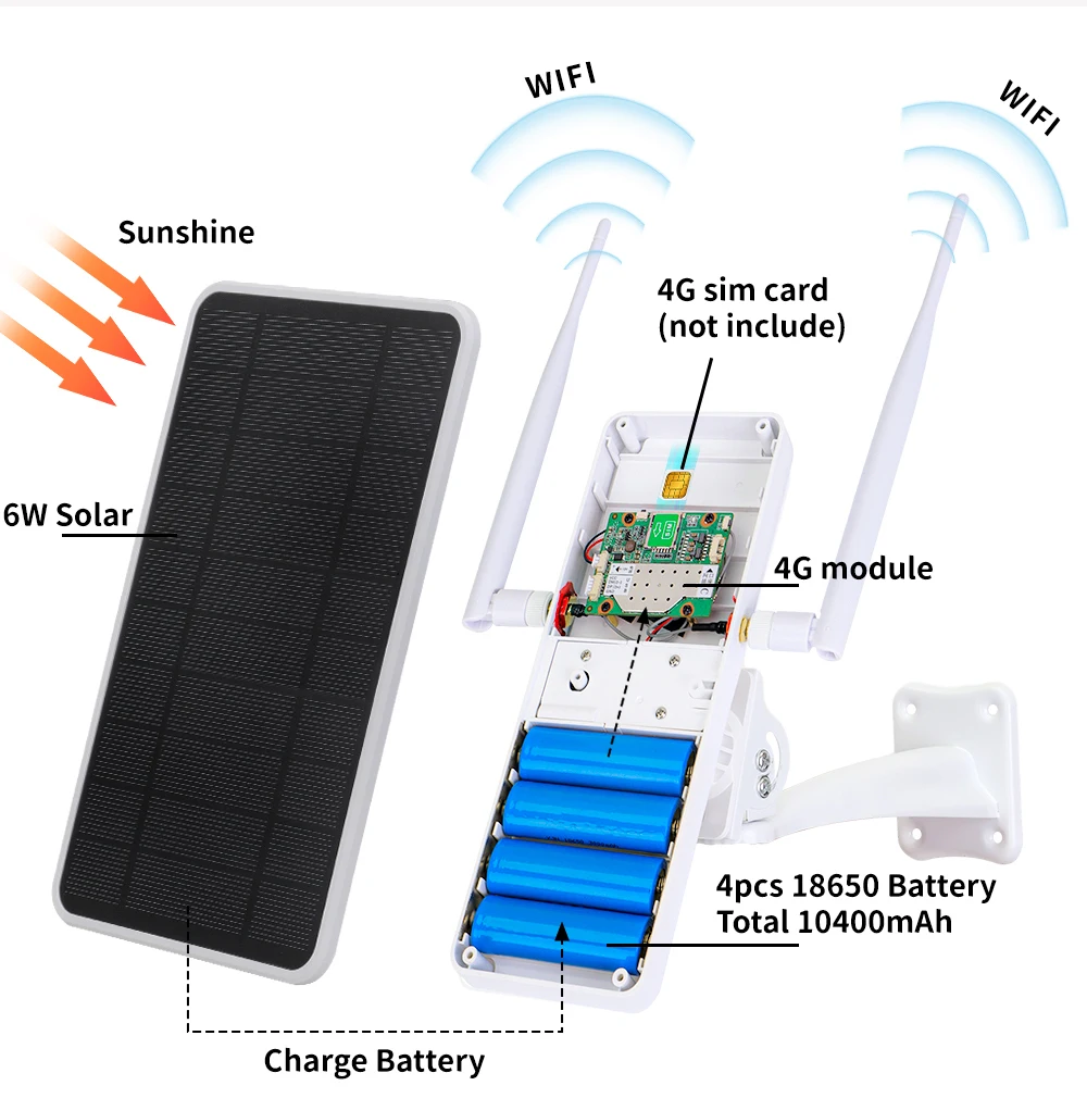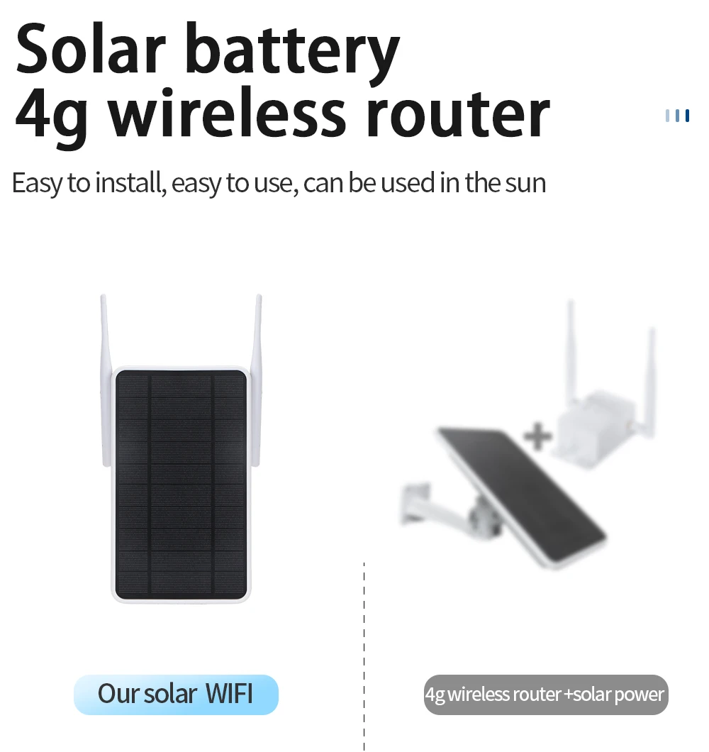 Hotspot WiFi inalámbrico solar para exteriores W3 para cámara de seguridad código QR o Insertar tarjeta SIM uso Solar 4G LET Router 15W 5V Panel Solar