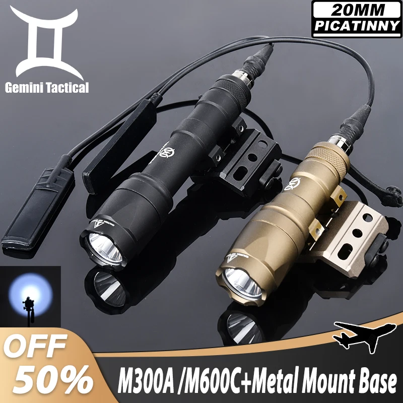 WADSN 600Lumen M600C Spotlight Scout 400Lumen M300A Linterna Offset Mount Set M300M600 Luz de caza LED blanca con base de metal