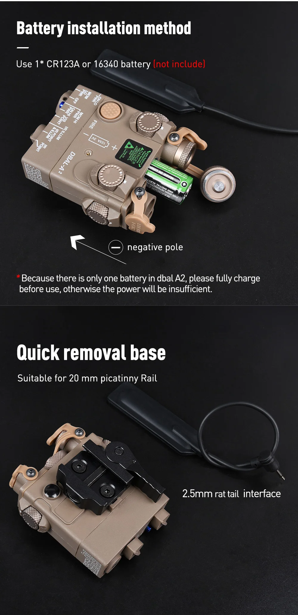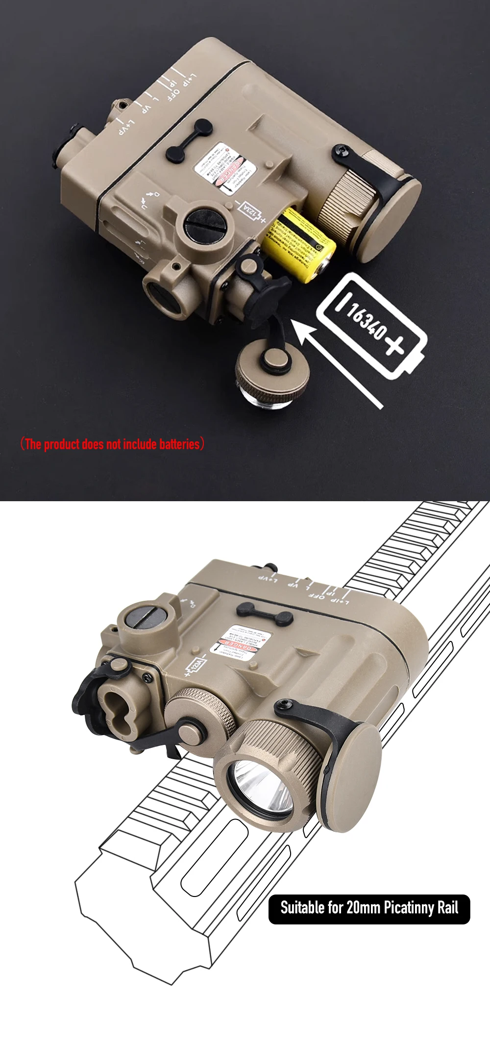 Batería: batería de 3,7 V 16340 o batería CR123A (el producto no incluye batería)