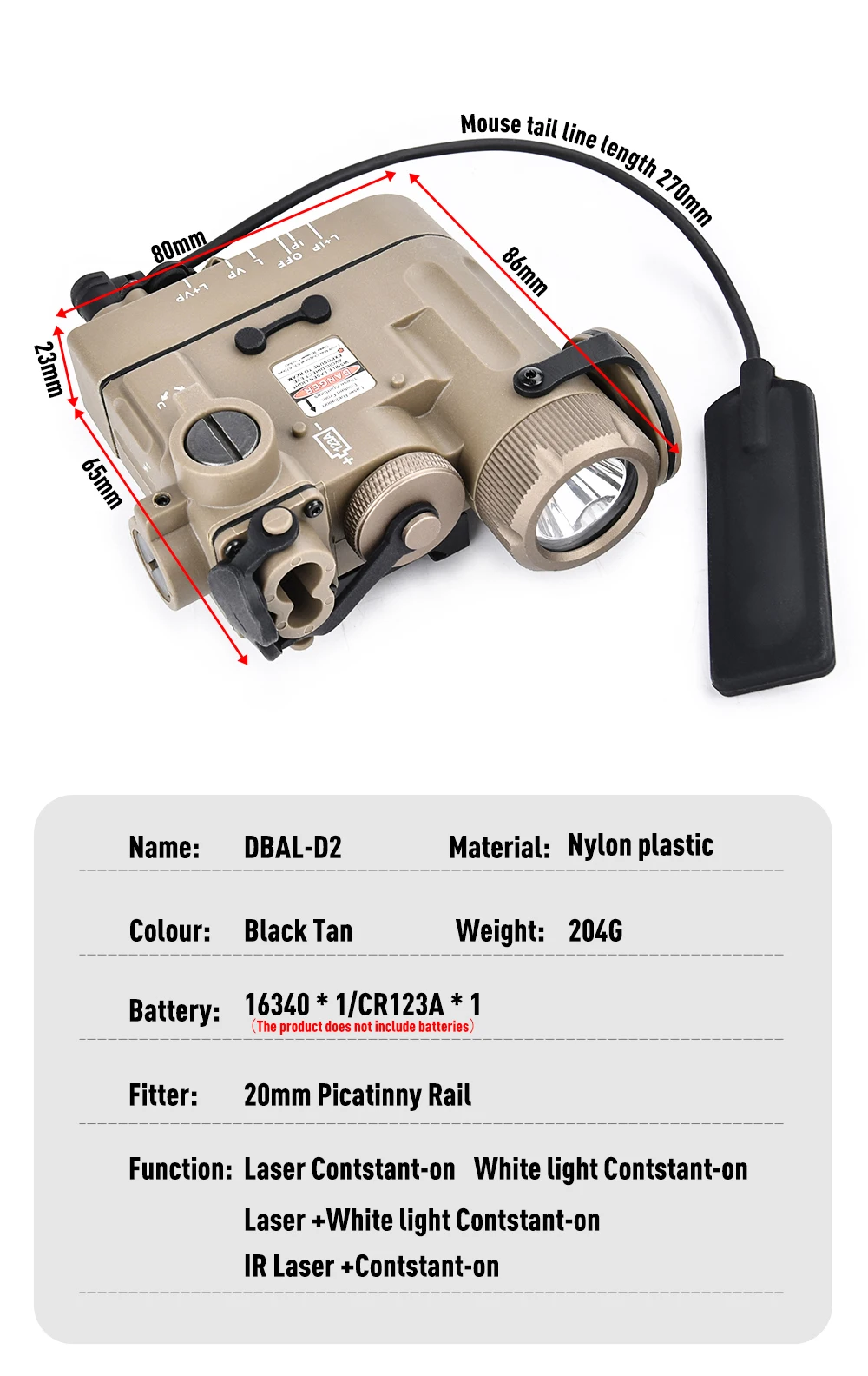 WADSN A2 DBAL D2 puntero láser IR indicador de visión de punto rojo luz Airsoft multifunción DBAL-A2 DBAL-D2 MKII lámpara táctica Scout