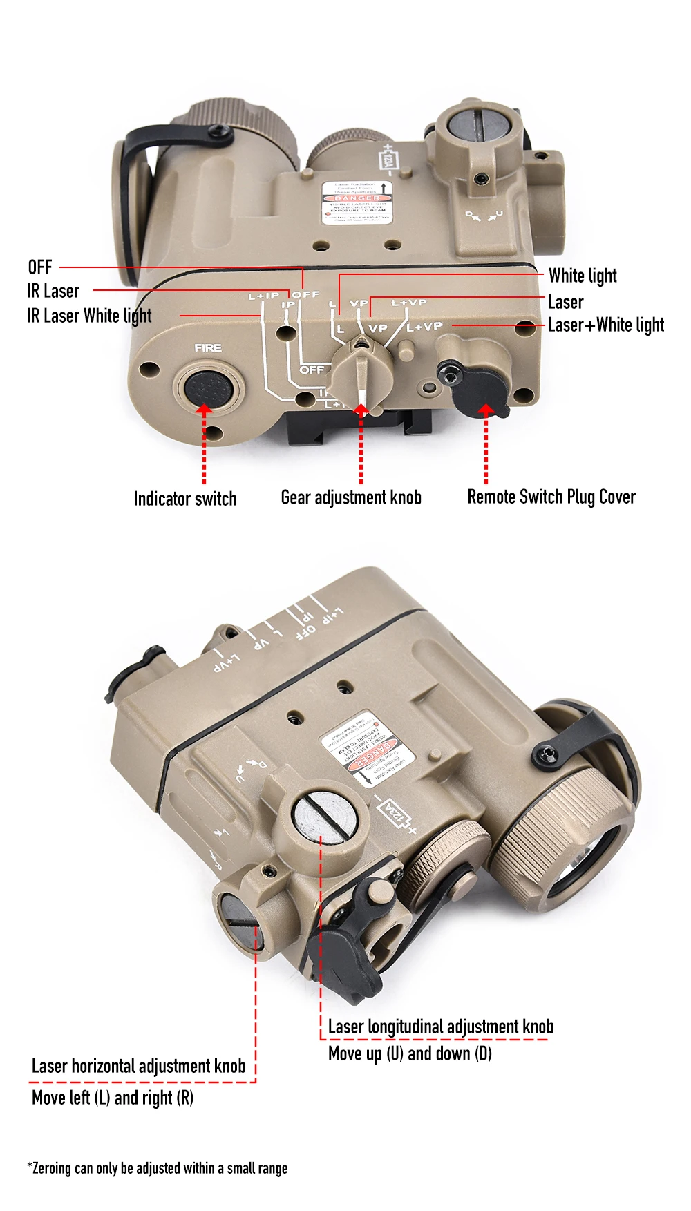 1.Láser rojo, láser IR, luz blanca y estroboscópica.