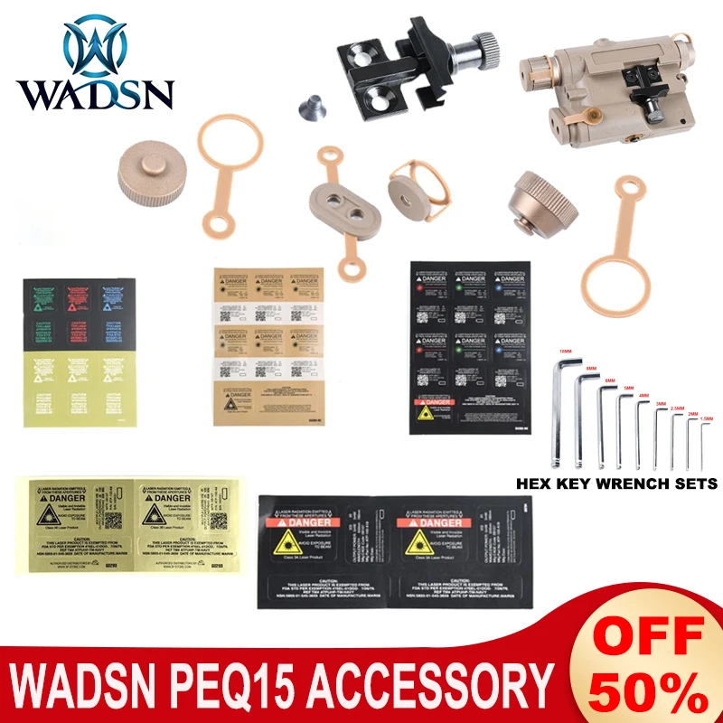 Accesorios de caza Wadsn, cubierta de batería PEQ15, etiqueta adhesiva láser táctica DBAL A2, etiqueta de distinción, llave Allen de acero inoxidable
