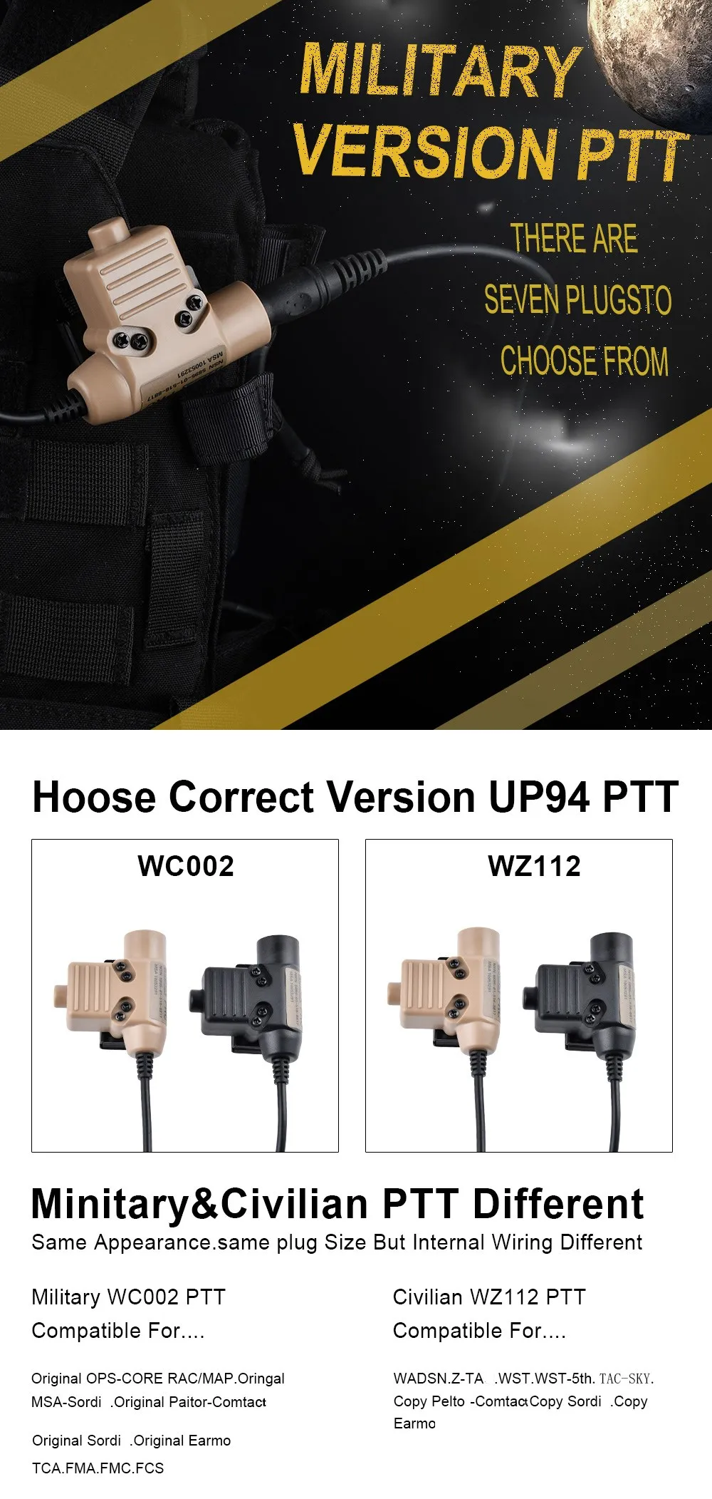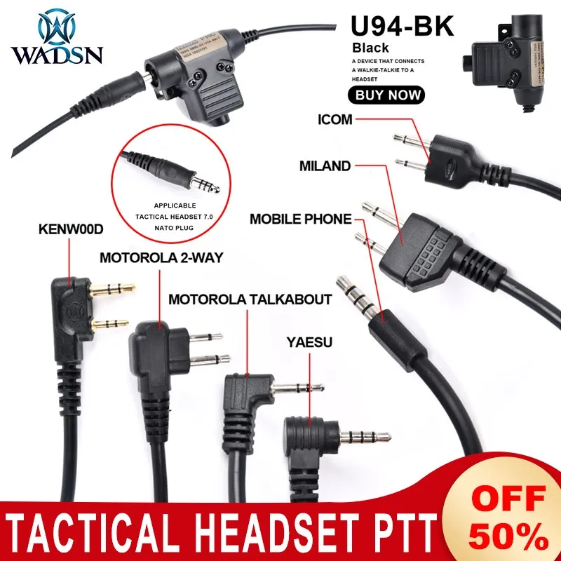 WADSN-Adaptador de auriculares tácticos militares U94 PTT, auriculares de caza al aire libre para teléfono móvil Midland, accesorios de intercomunicación Kenwood PTT