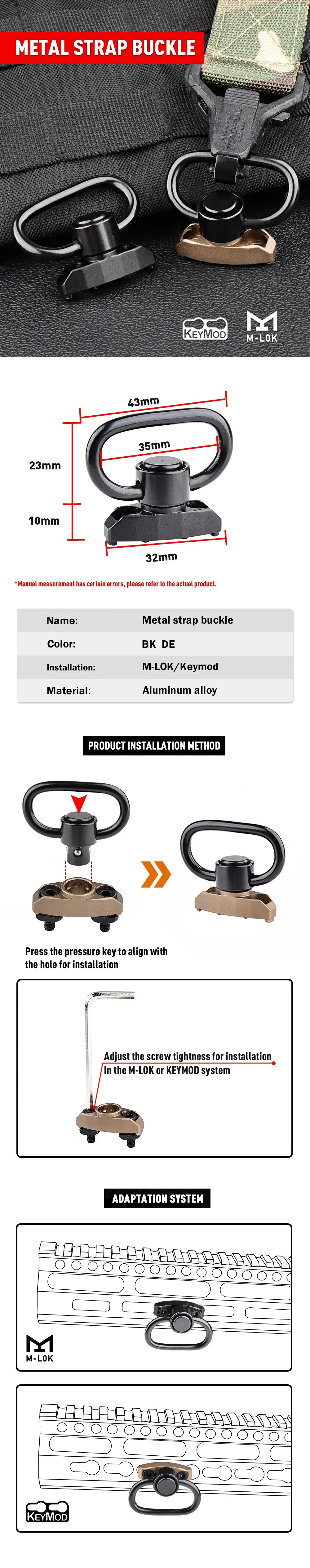 WADSN, adaptador de eslinga de Metal táctico QD, M-LOK de montaje en Riel, correa de hebilla, correa de lazo, correa de acero, botón de montaje en riel