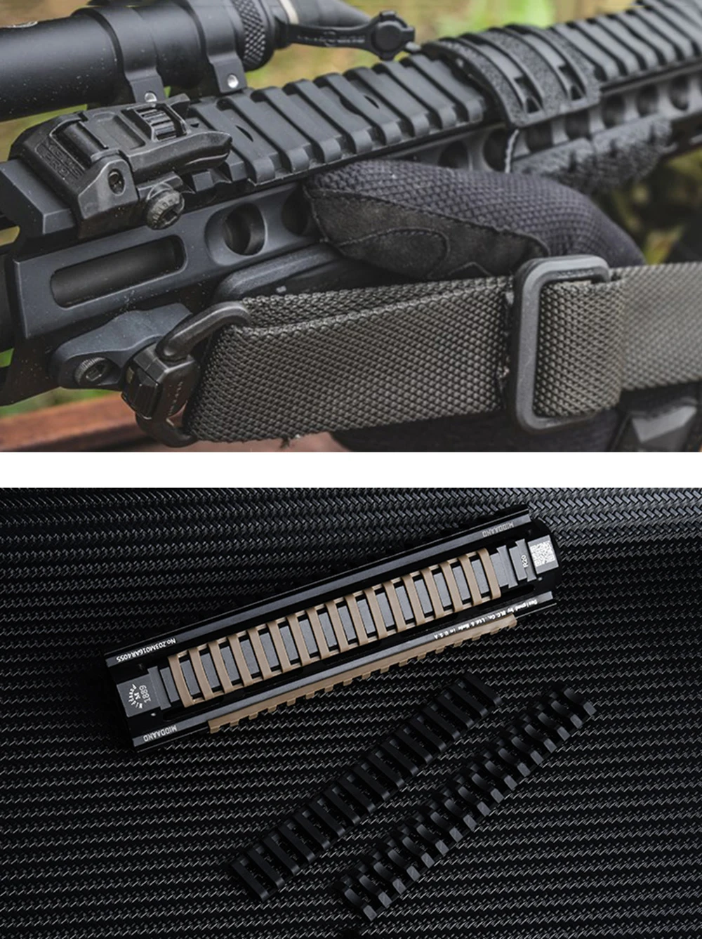 1.18-Slot Picatinny Ladder Rail Panel ,add an extra layer of silicone protection for the fishbone guide, 2.Suitable for 20mm picatinny rail 3.4pcs per pack, DE/BK two colors for choose