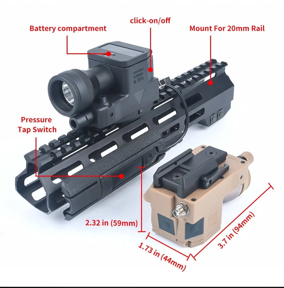 WADSN Airsoft-arma de Rifle de caza LLM01 montada hacia abajo, luz de puntero láser IR roja con linterna Led blanca de 350 lúmenes, nueva versión