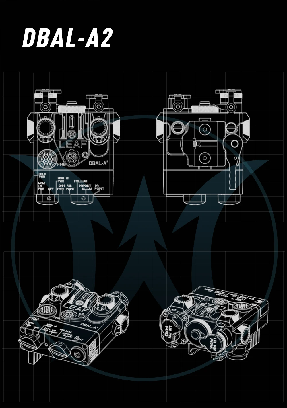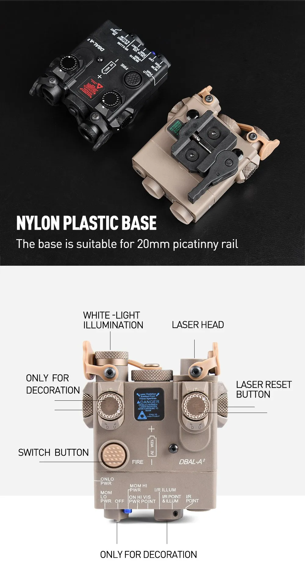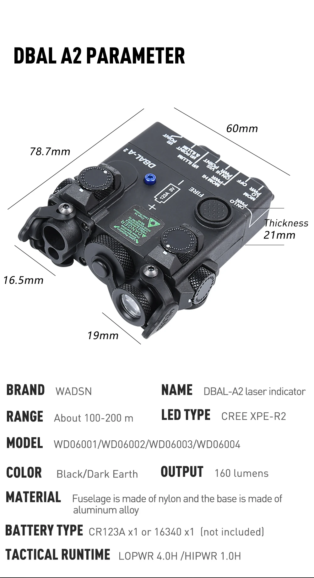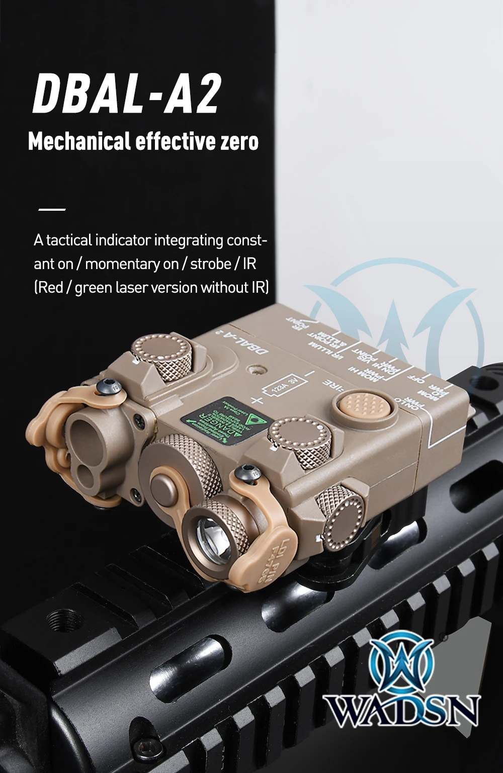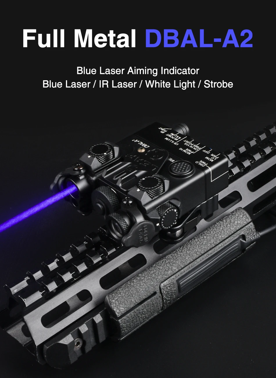 WADSN DBAL-A2 Airsoft azul/verde láser Metal CNC IR vista DBAL táctico Dbal A2 Nylon blanco LED linterna compatible con riel de 20MM