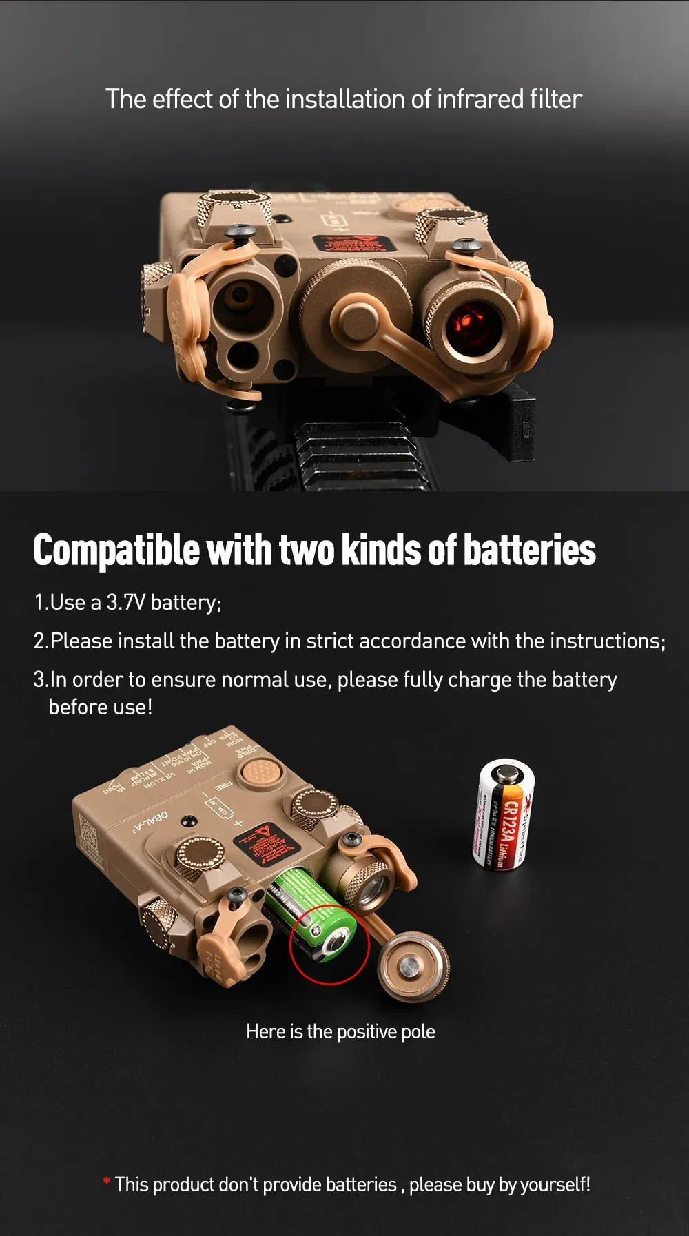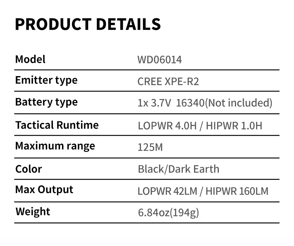 Batería: Batería CR123A puntiaguda * Batería 1/31640 puntiaguda * 1 (no incluida en el producto)