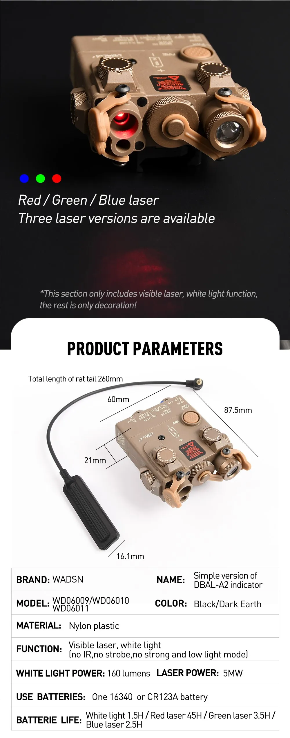 Nombre: Láser azul/verde WADSN DBAL-A2 Airsoft