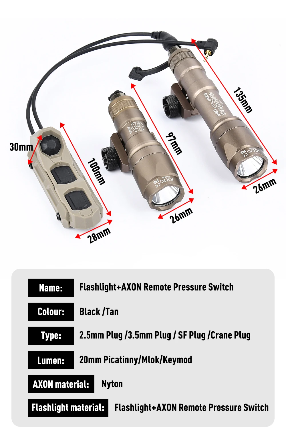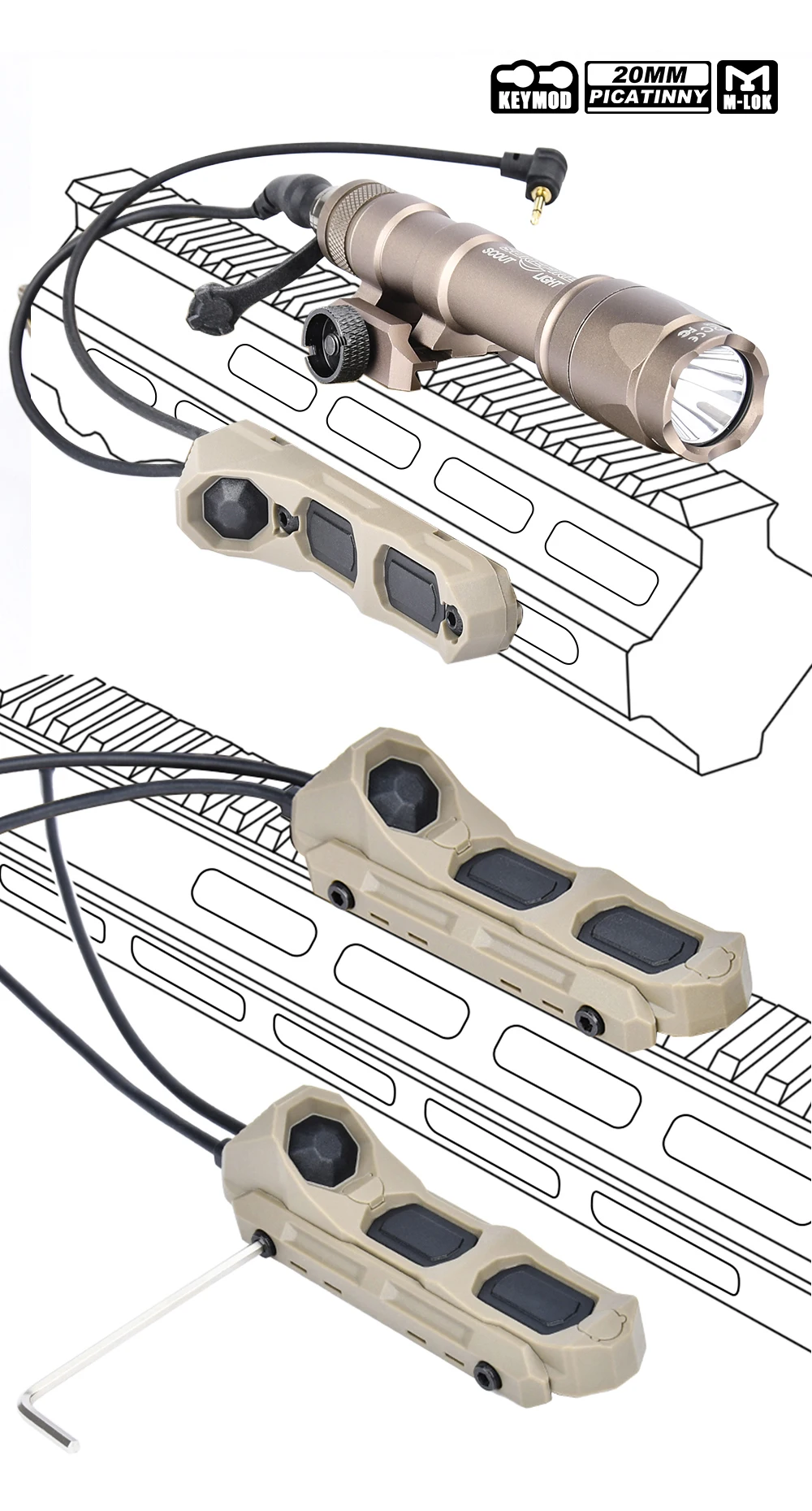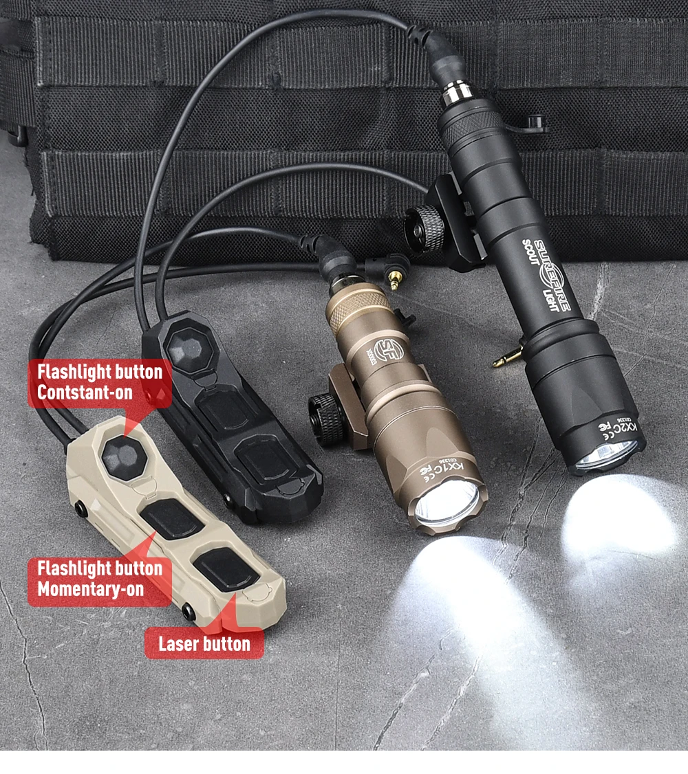 WADSN Airsoft M300 M600 Surefir linterna táctica caza Scout luz con interruptor de presión doble enchufe de 2,5mm para combinación de láser