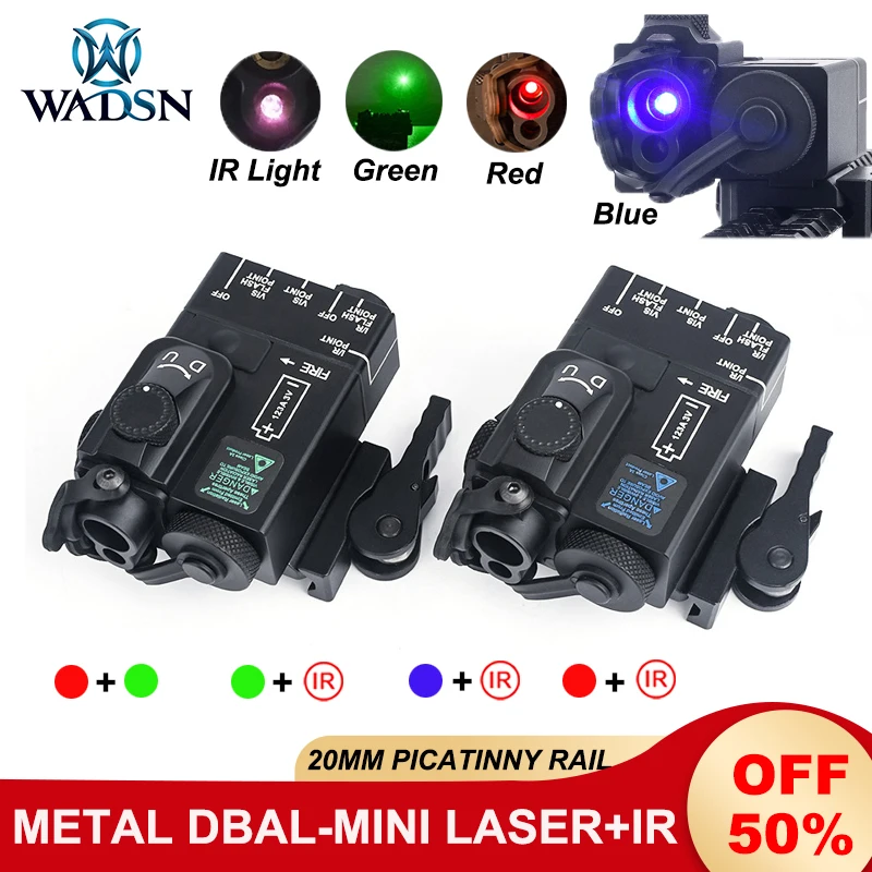 WADSN Airsoft MINI Luz Estroboscópica de Vista IR, Láser de Punto Rojo, Verde y Azul, CNC, Metal, Mini Dbal A2, Luces de Caza, 20MM, Carril