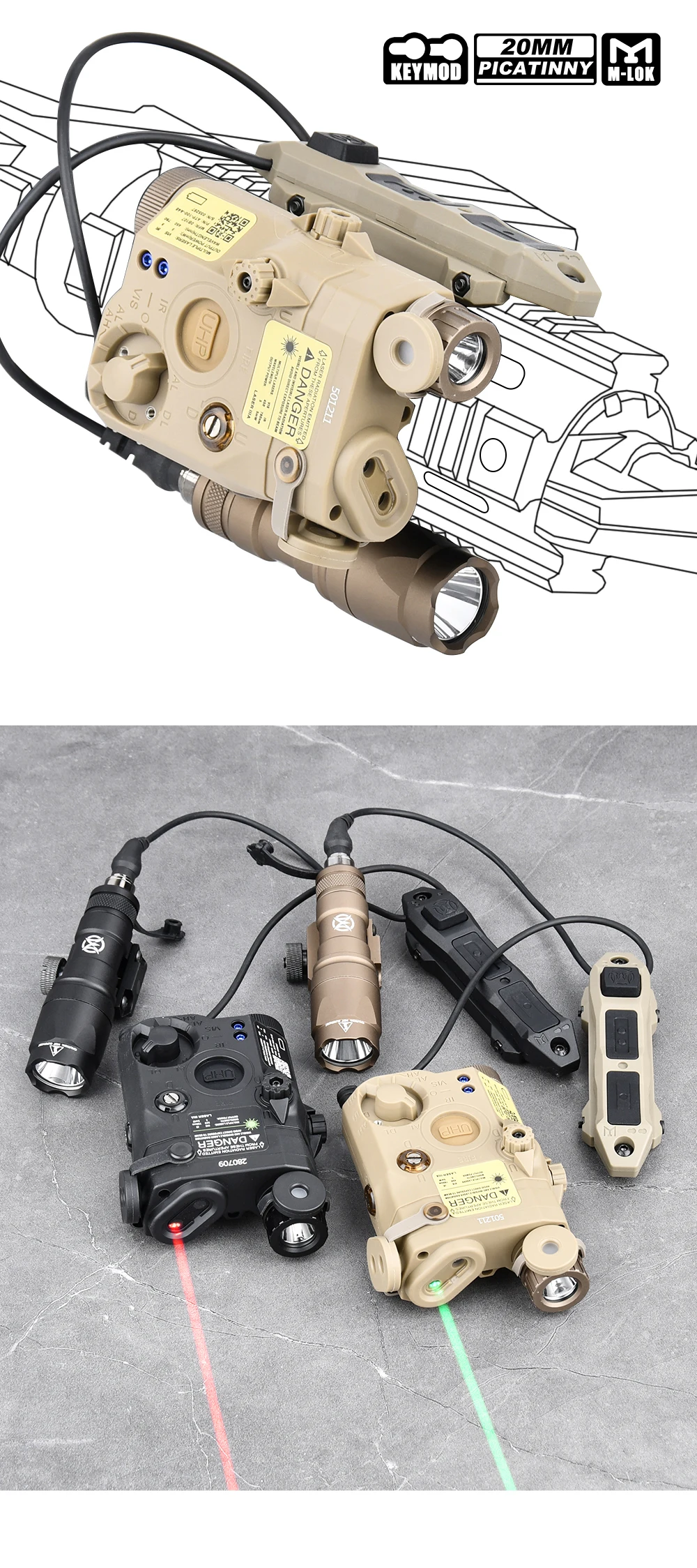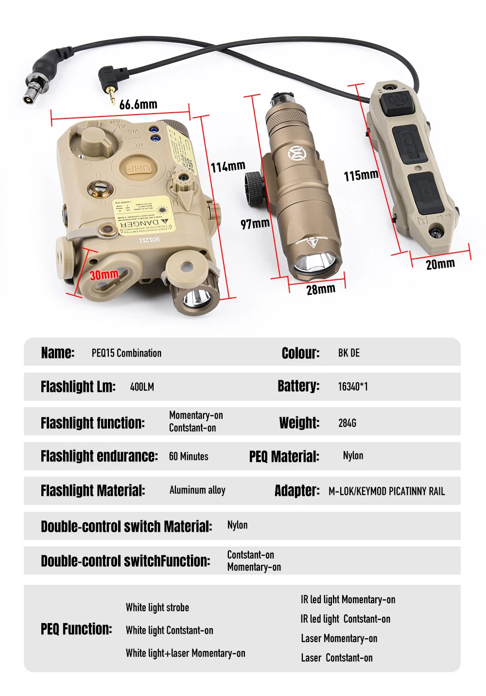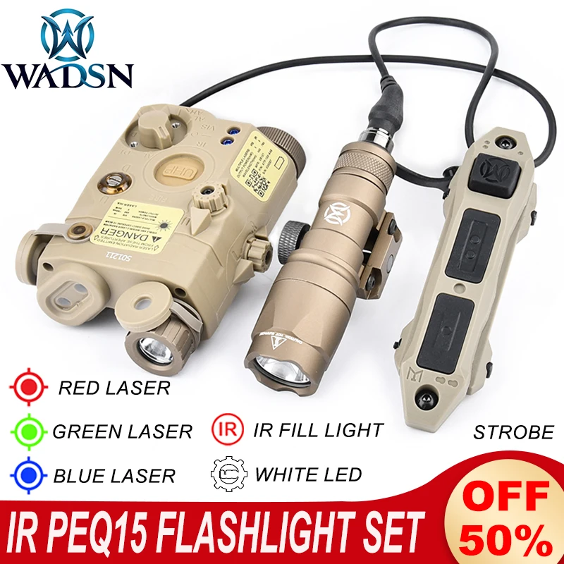 WADSN Airsoft PEQ15 luz de relleno IR punto rojo láser Surefir M300A MINI lámpara de explorador de arma táctica con interruptor de presión de doble función