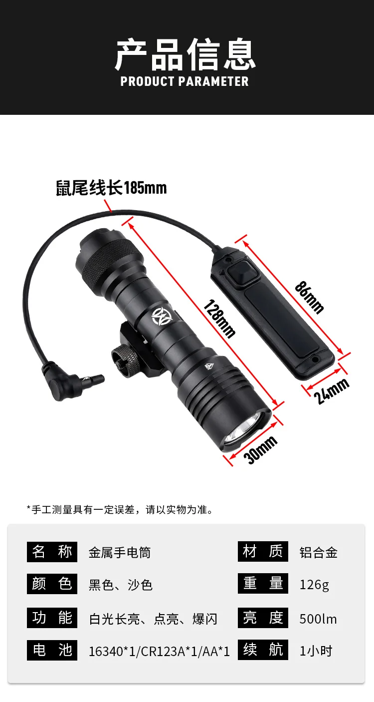 WADSN Airsoft Surefir linterna de Metal luz de explorador táctico AR15 arma de Rifle linterna LED foco de caza SF lámpara de pistola PEQ15