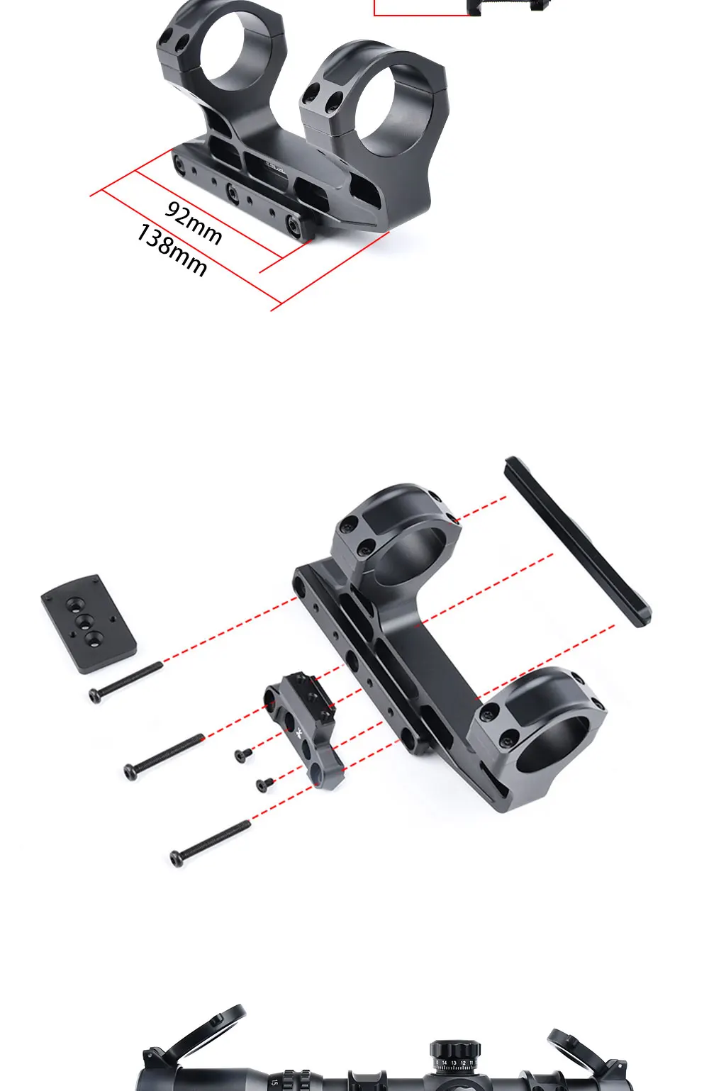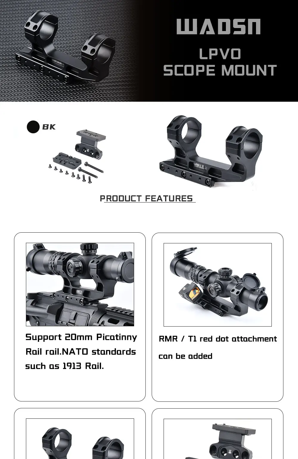 WADSN Airsoft táctico rápido Lpvo alcance montaje 30mm linterna de punto rojo para Rifle AR15 20mm Picatiny Rail accesorios de Base de mira