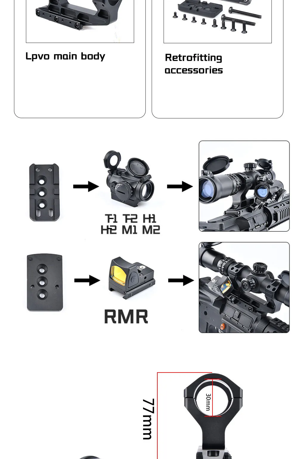 WADSN Airsoft táctico rápido Lpvo alcance montaje 30mm linterna de punto rojo para Rifle AR15 20mm Picatiny Rail accesorios de Base de mira